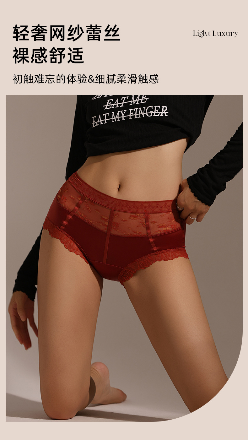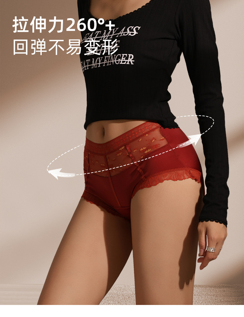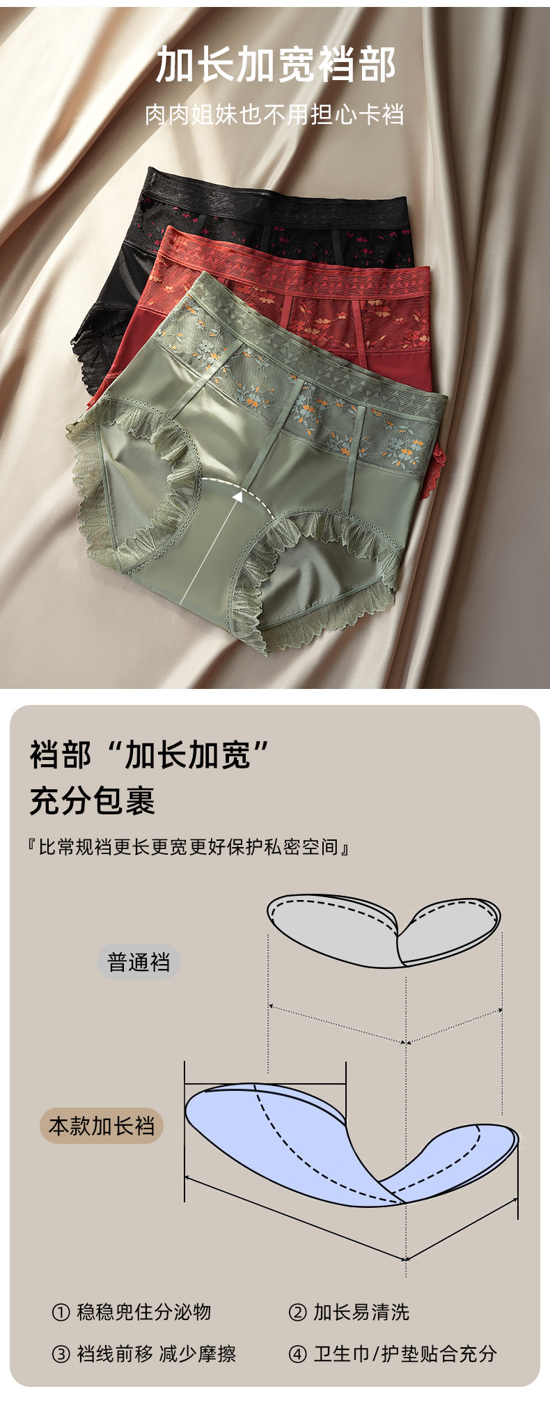레이스 고급스러운 섹시한 속옷, 편안하고 통기성이 뛰어나며 항균, 가랑이 신축성 있는 대형 팬티, 여성용 새 엉덩이 커버 반바지