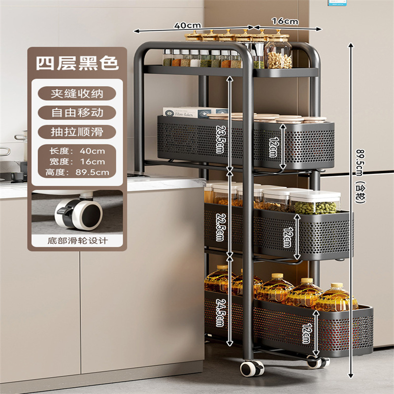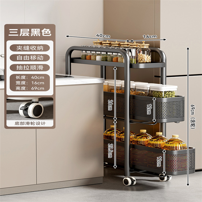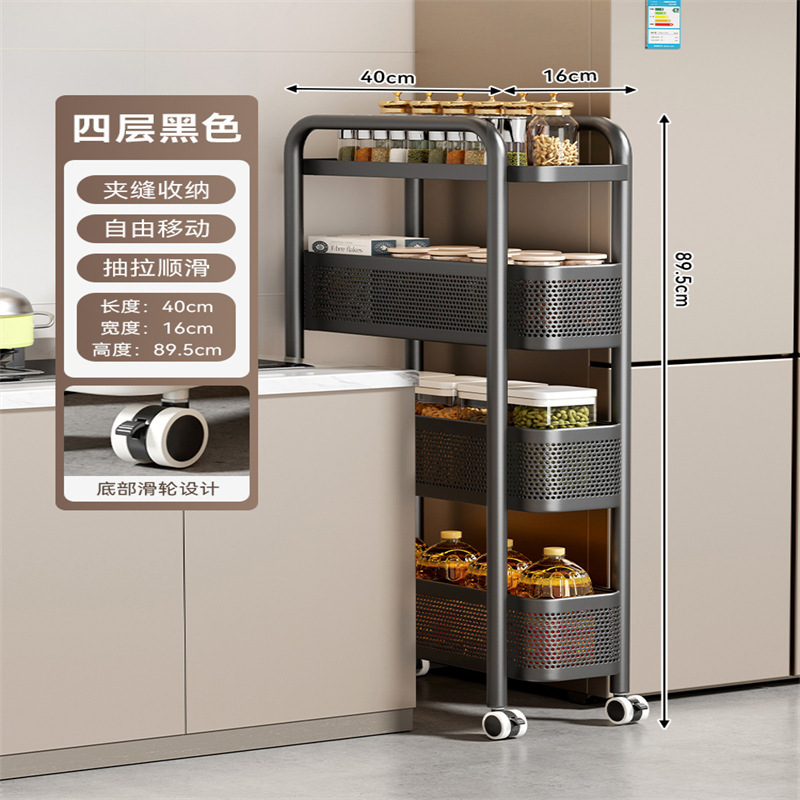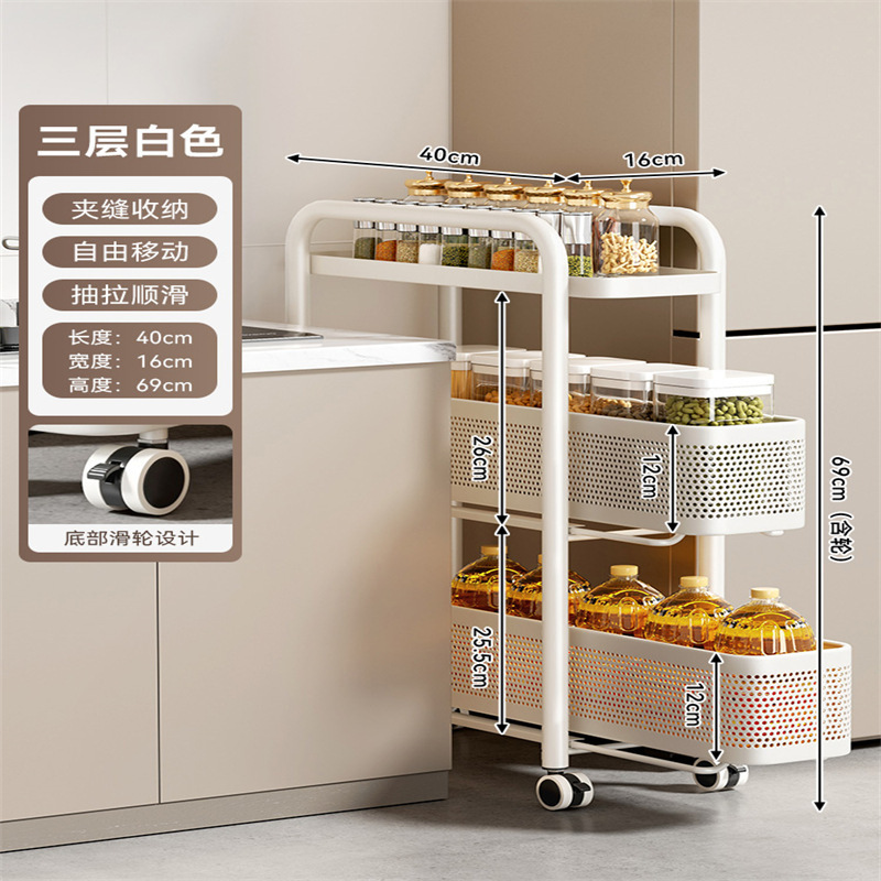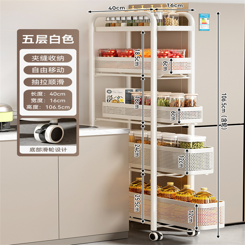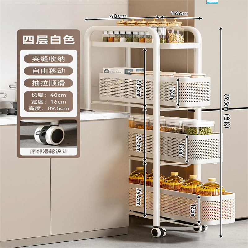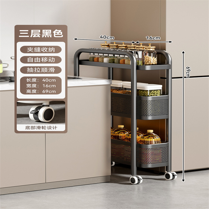 주방 틈새 수납 선반, 냉장고 측면 풀아웃 캐비닛, 트롤리, 가정용 다층 조미료, 매우 좁은 틈새 수납 캐비닛