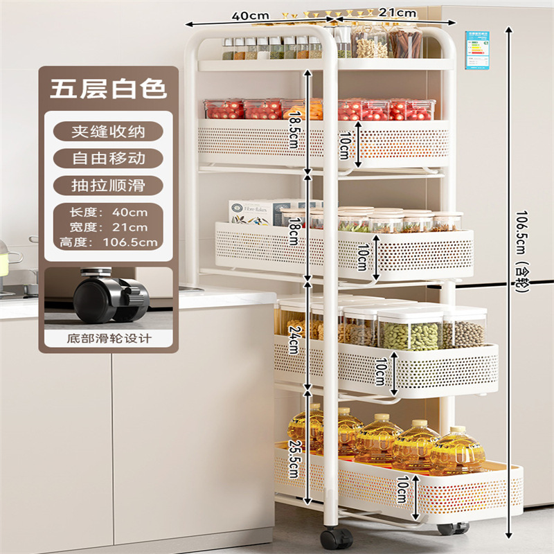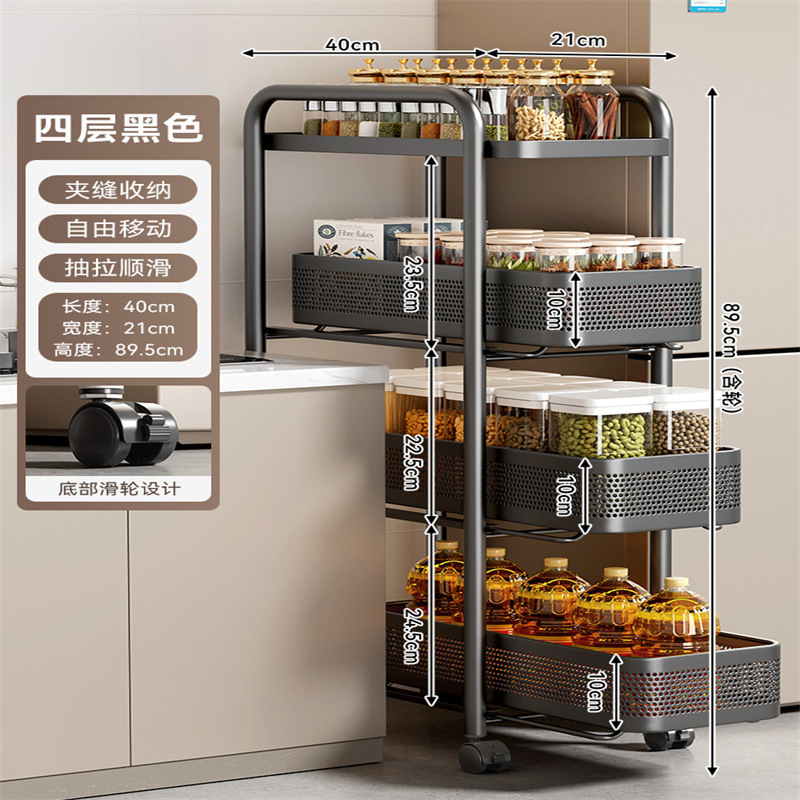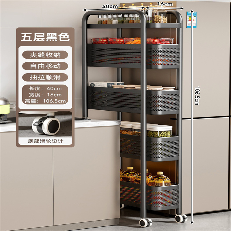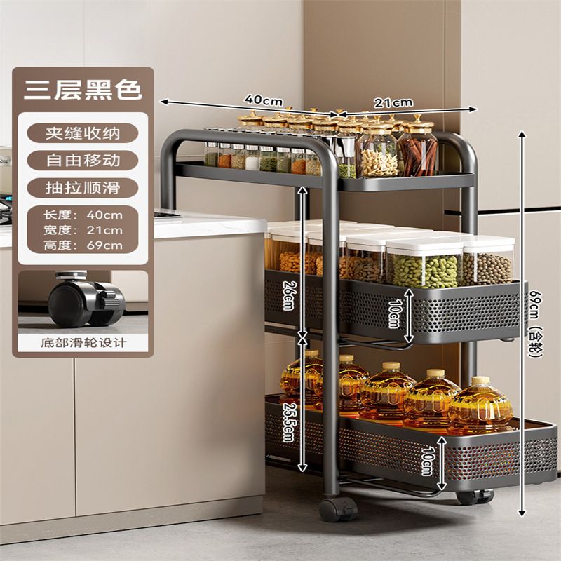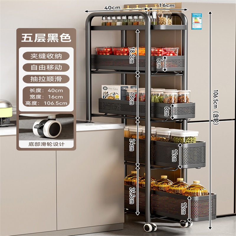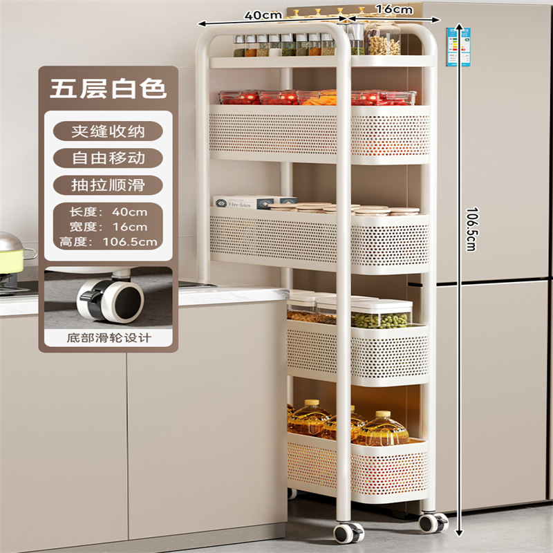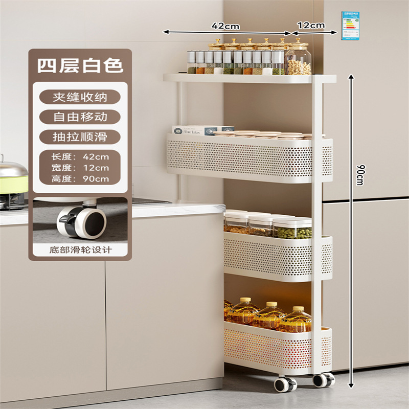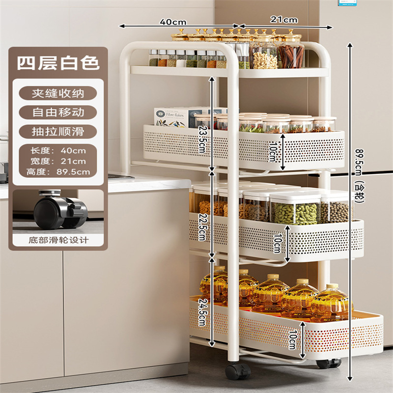 주방 틈새 수납 선반, 냉장고 측면 풀아웃 캐비닛, 트롤리, 가정용 다층 조미료, 매우 좁은 틈새 수납 캐비닛