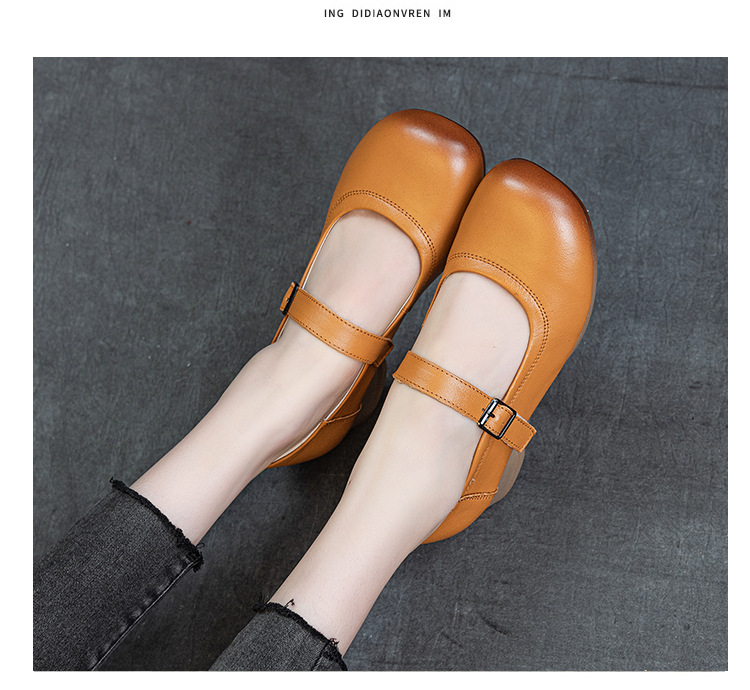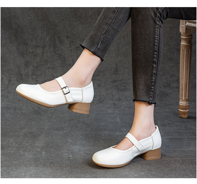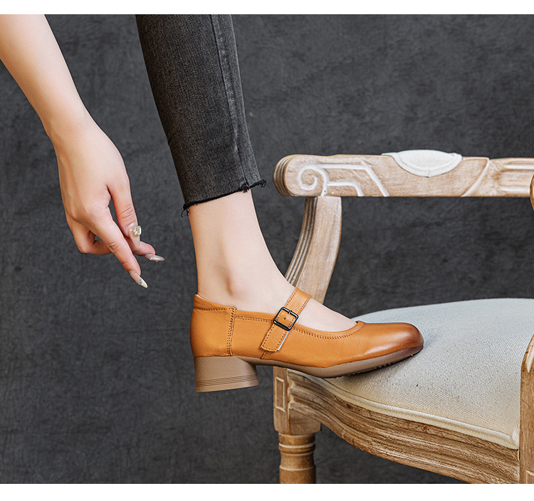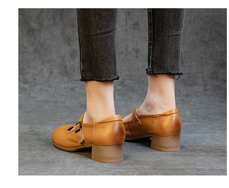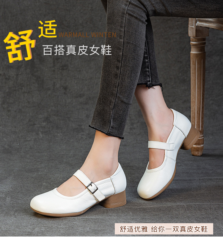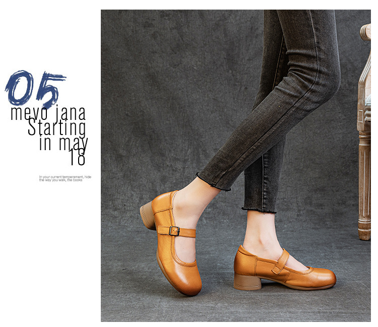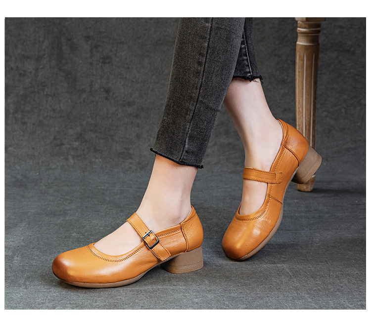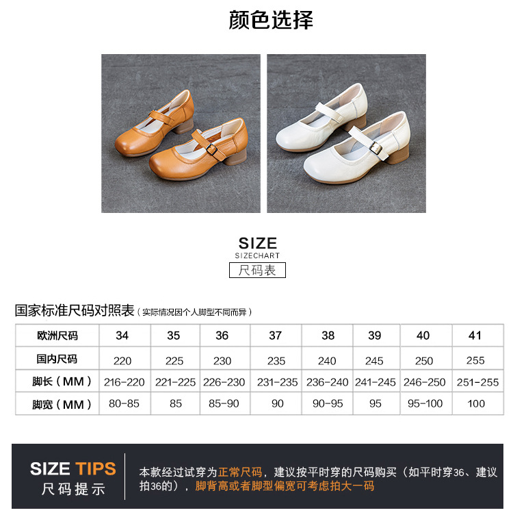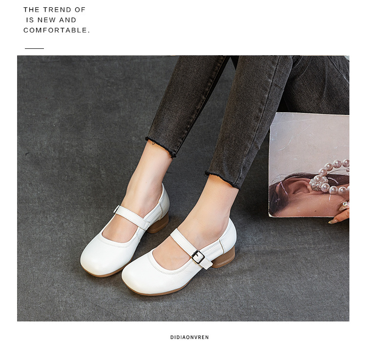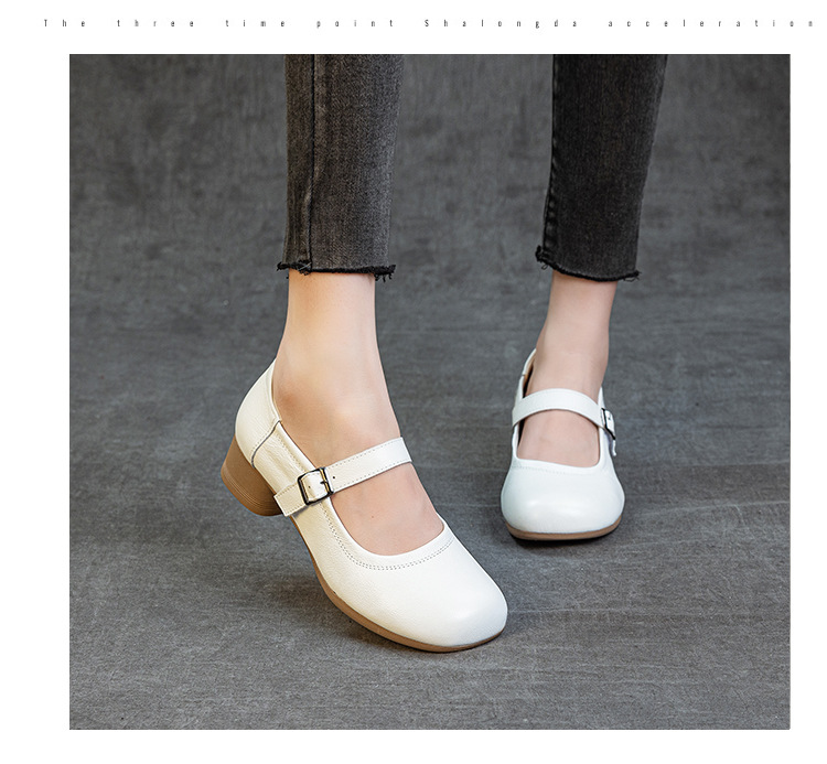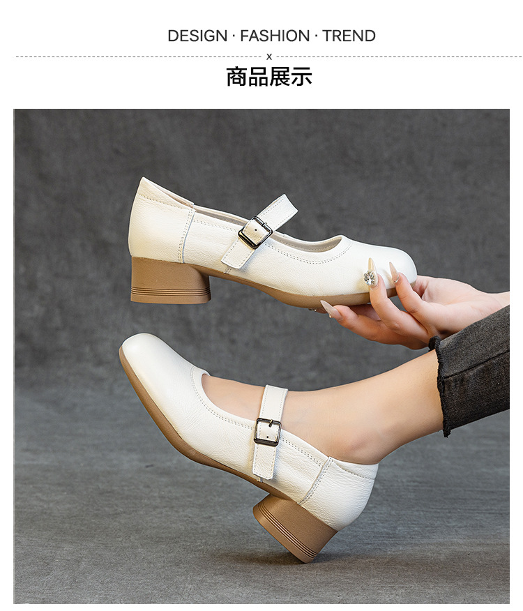1층 소가죽 신상 2025 가을 여성화, 중간 굵기의 굽, 메리제인 펌프스, 심플한 기질, 다재다능한 여성화스토어 가기