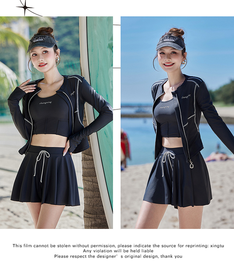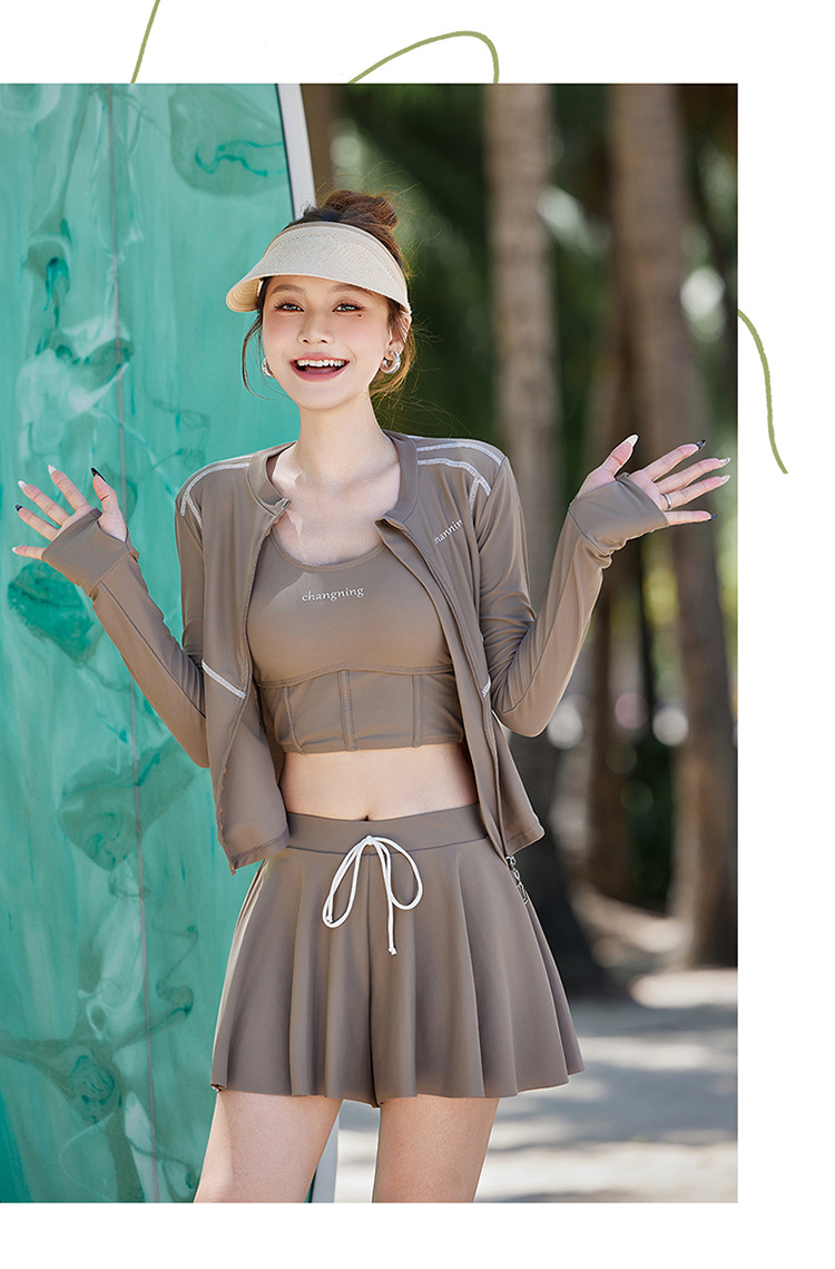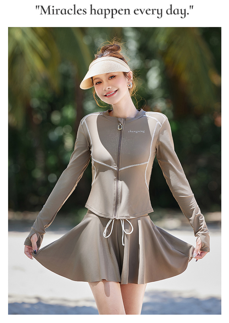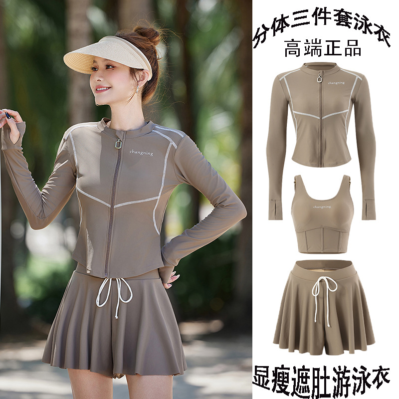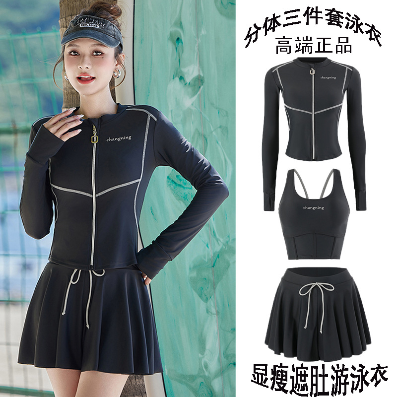 Changning 2025 새로운 수영복 여성 긴팔 자외선 차단 스플릿 보수적 다이빙 서핑 슈트 스커트 스타일 속건성 온천 수영복