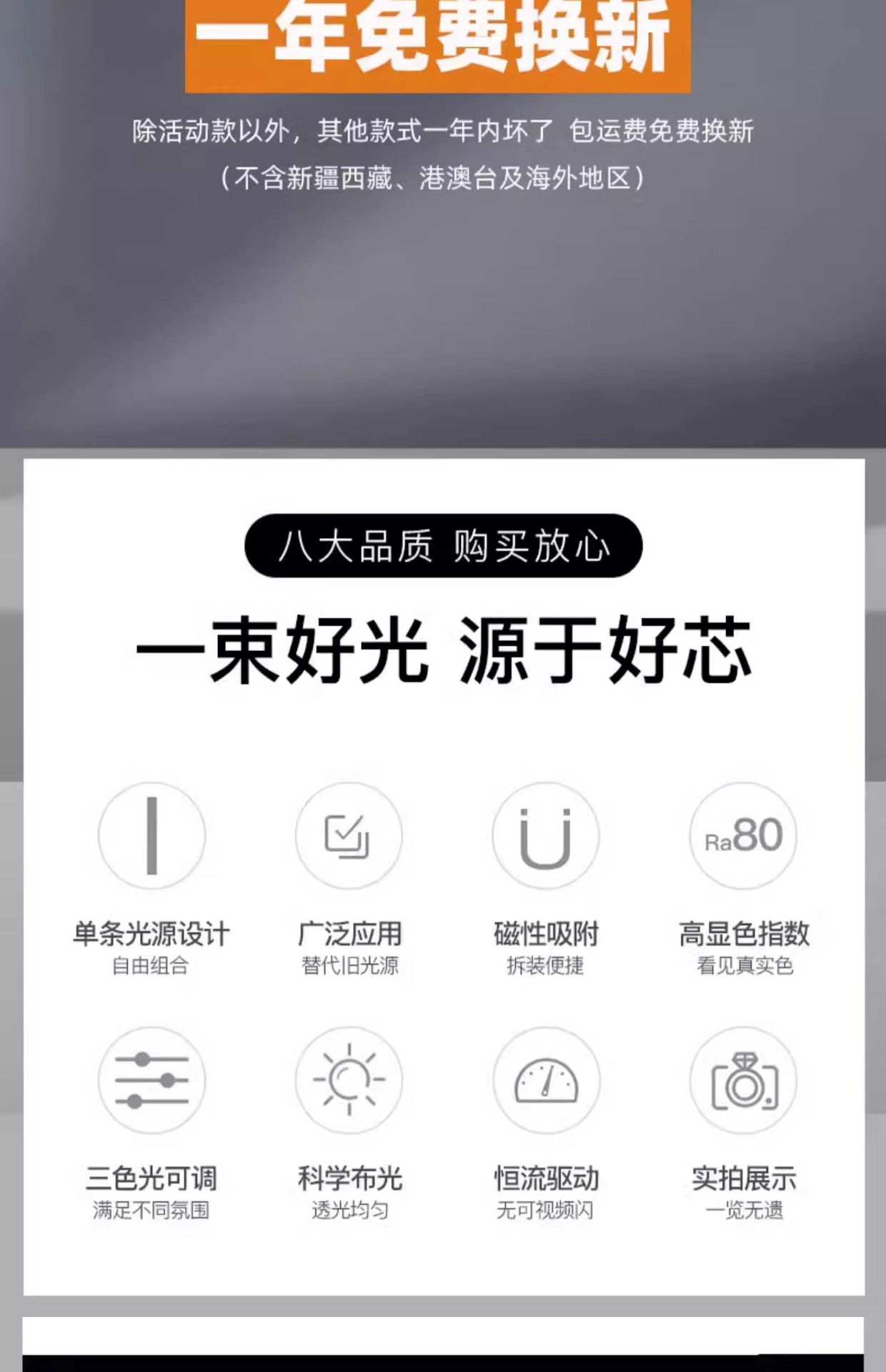 • 고휘도 52cm 4스트립 [백색광 40와트 + 따뜻한 조명 40와트] 전체 밝기 80와트