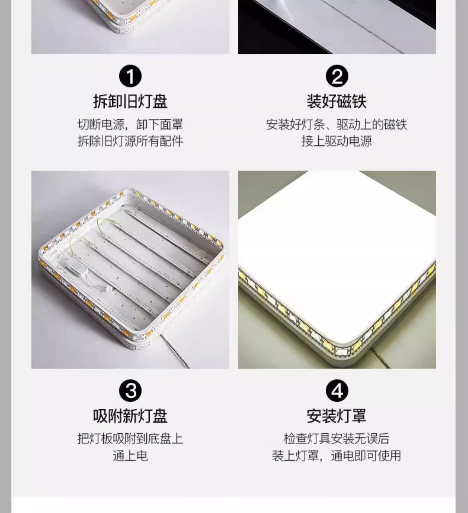 • 고휘도 31cm 4스트립 [백색광 24와트 + 따뜻한 조명 24와트] 전체 밝기 48와트