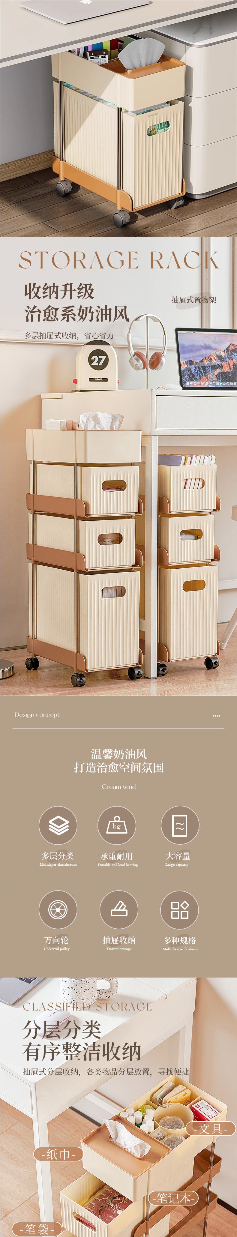 사무실 책상 밑 수납 캐비닛 서랍형 다층 바퀴 달린 학생 기숙사 도서 문구 스낵 장난감 수납 선반스토어 가기