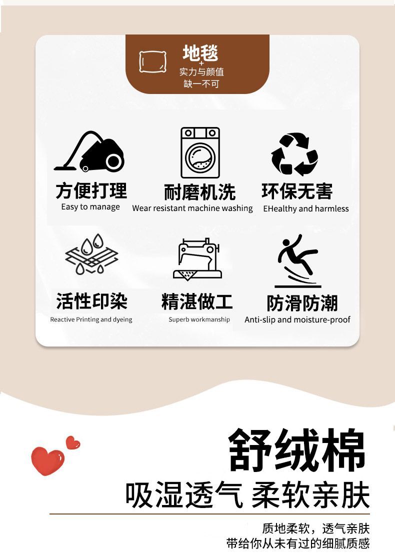 가벼운 고급 단색 접합 바닥 매트, 침실 침대 옆 얼룩 방지 발 매트, 가정용 미끄럼 방지 및 내마모성 아기 크롤링 매트스토어 가기