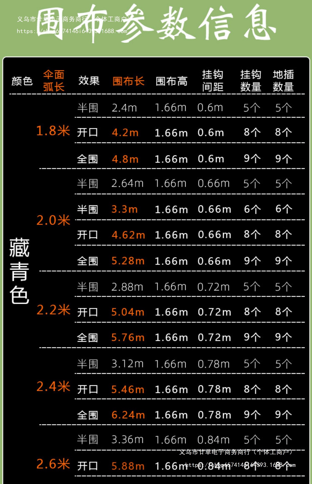 • 4.8m 남색 전체 둘레 천/플라스틱 바닥 삽입 1.8m 우산 아크에 적합