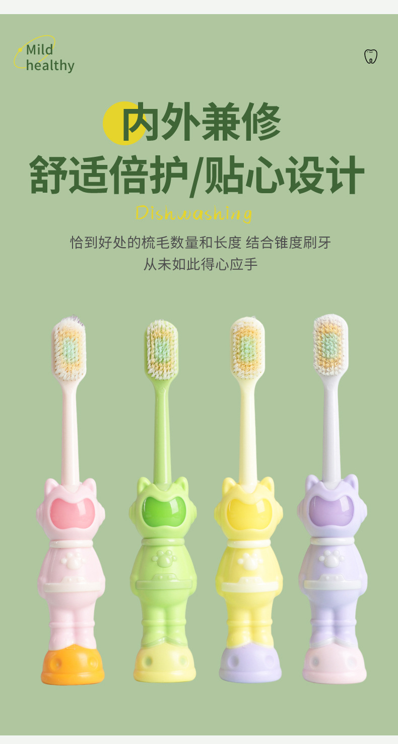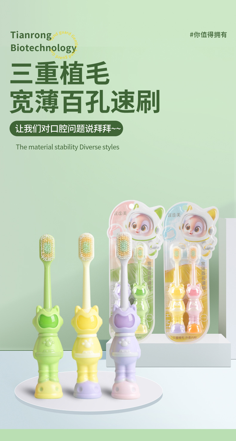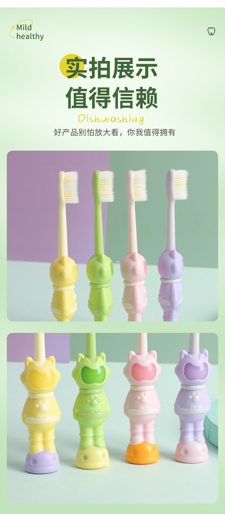 Yi Shimei Space Cat 만화 어린이 칫솔 부드러운 강모 3-6 세 홈 잇몸 보호 청소 칫솔 백화점 도매