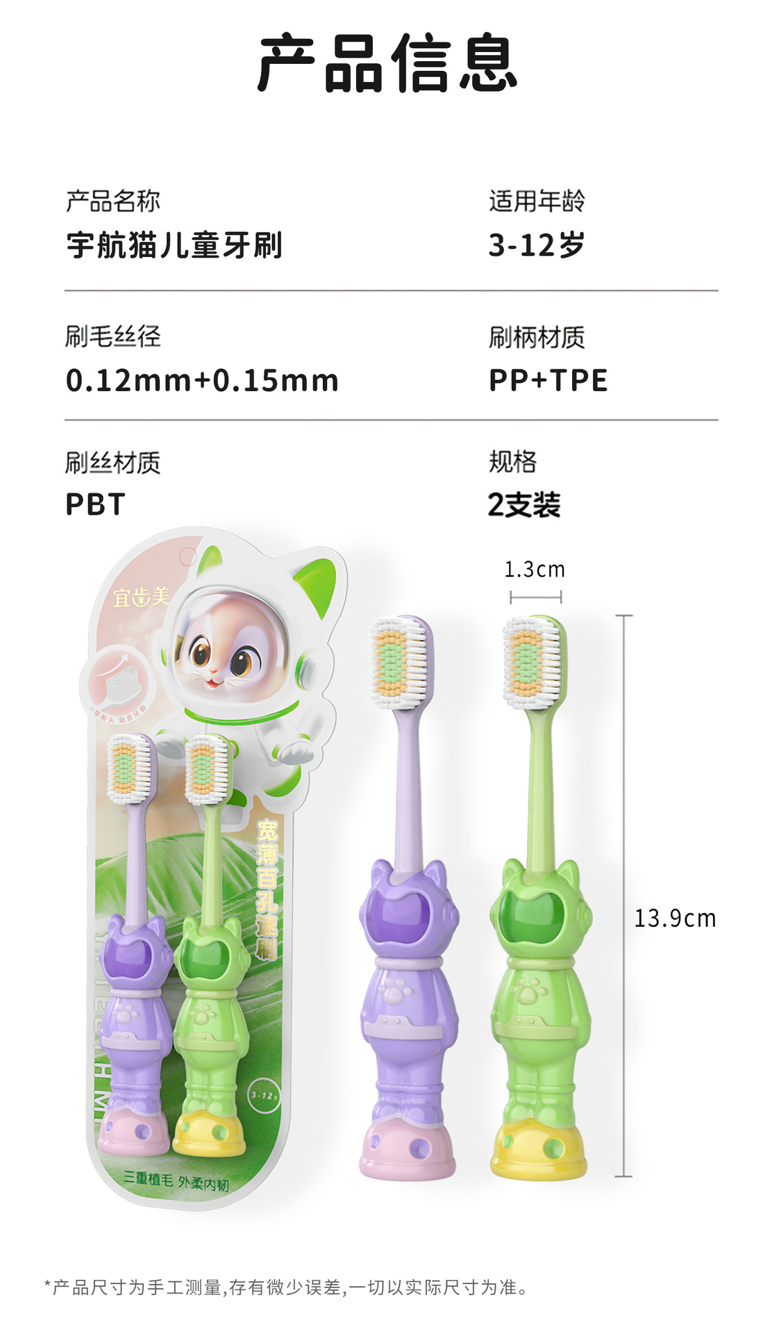 Yi Shimei Space Cat 만화 어린이 칫솔 부드러운 강모 3-6 세 홈 잇몸 보호 청소 칫솔 백화점 도매스토어 가기
