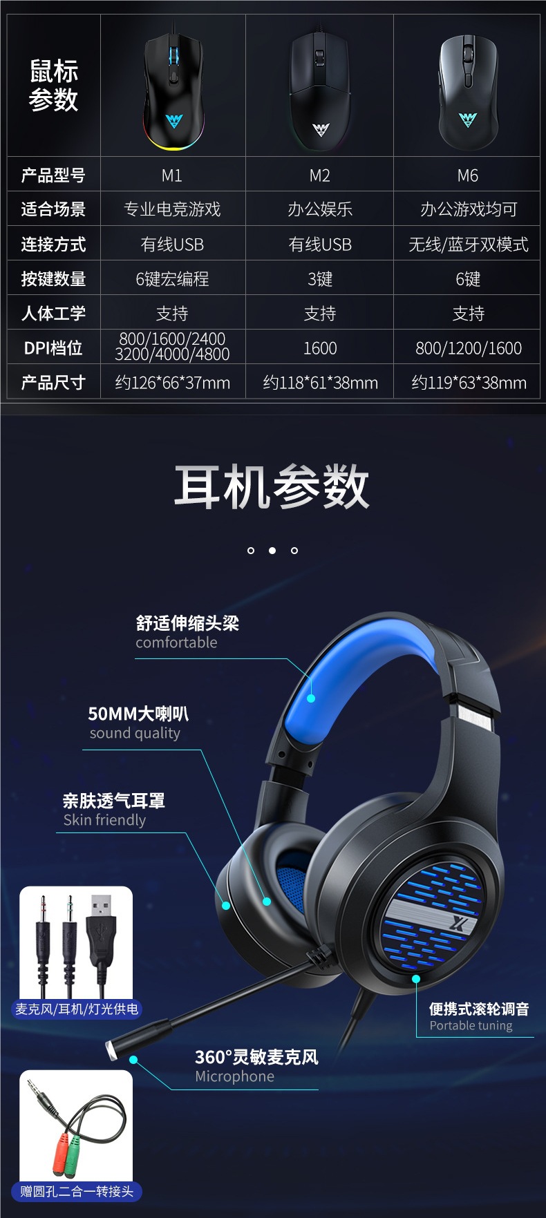 • 블랙 라이트 샤프트 혼합 조명 + M1 게이밍 마우스 - RGB 버전 + 헤드폰