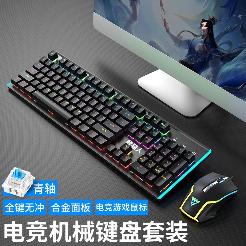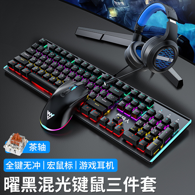 • 홍차 샤프트 혼합 조명 + M5 게이밍 블랙 마우스 + 헤드폰