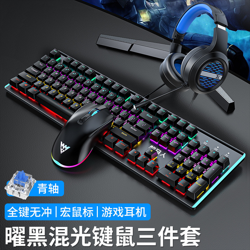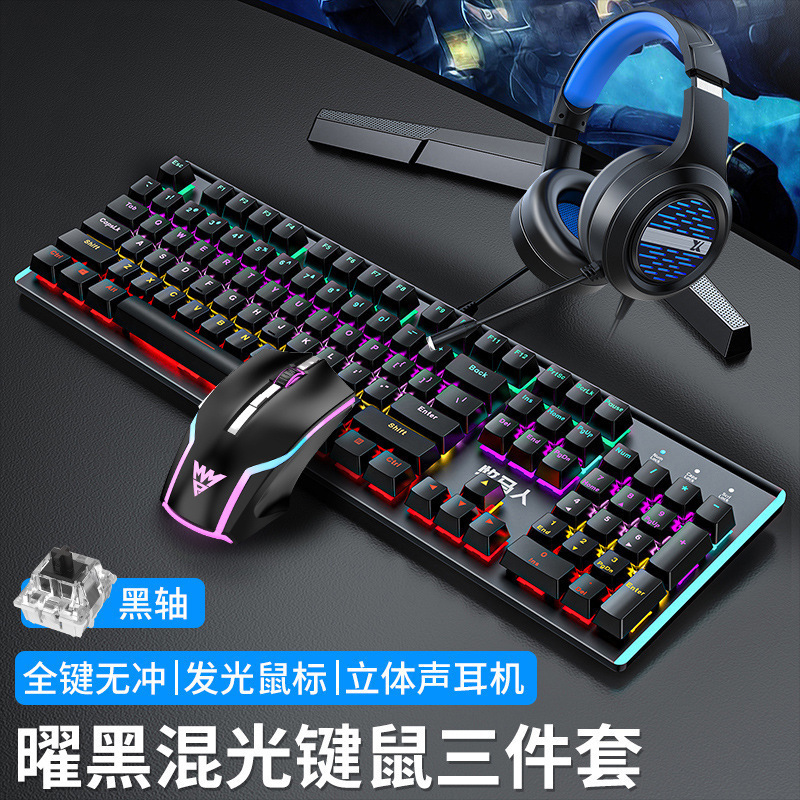 • 블랙 블랙 샤프트 혼합 조명 + M5 게이밍 블랙 마우스 + 헤드폰