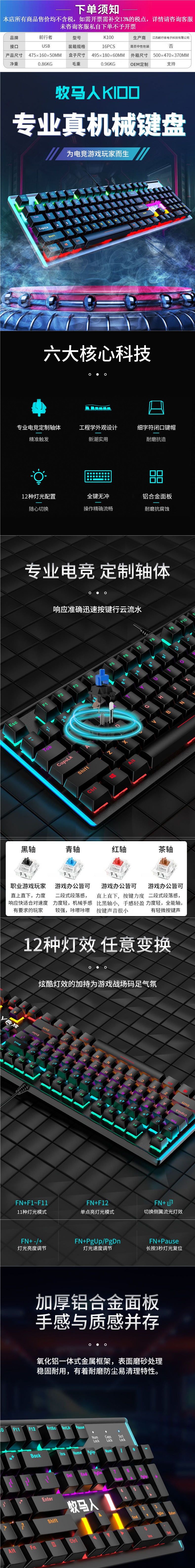 Wrangler K100 기계식 키보드 풀 키 무 버팀대 게임 e-스포츠 유선 기계식 키보드 주변 장치 도매 도매스토어 가기