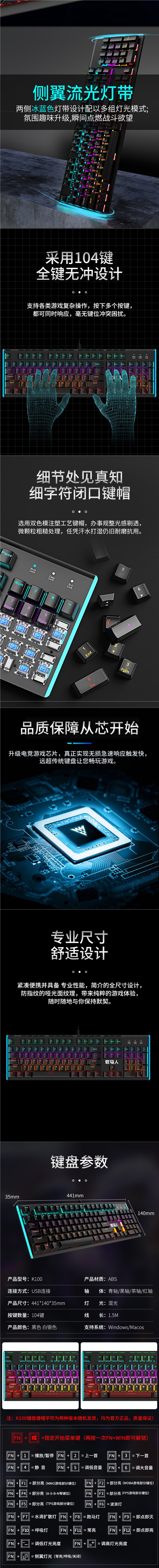 Wrangler K100 기계식 키보드 풀 키 무 버팀대 게임 e-스포츠 유선 기계식 키보드 주변 장치 도매 도매
