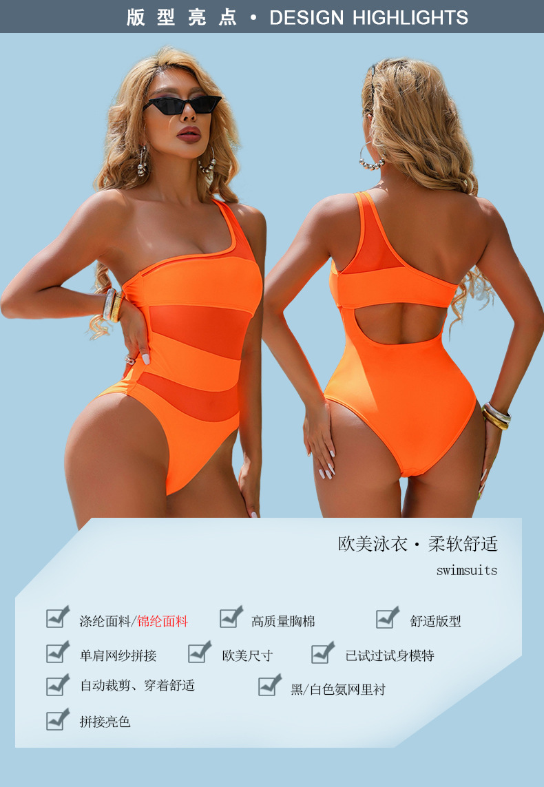 여성용 수영복 2025 신제품 점프 슈트 섹시한 유럽과 미국의 국경 간 대외 무역 솔리드 컬러 섹시한 타이트 한 원 숄더 원피스스토어 가기