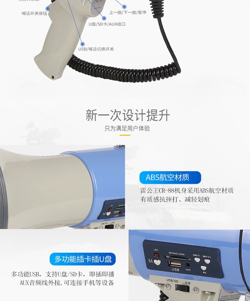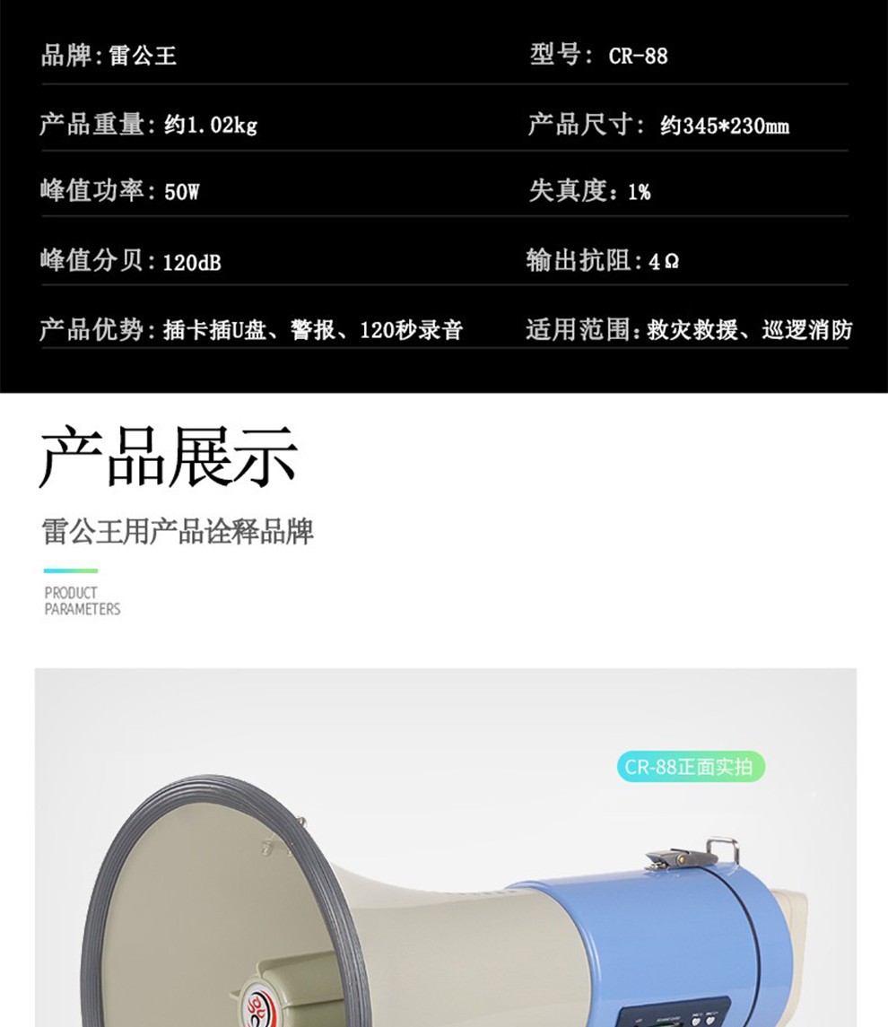 레이공왕 CR-88 휴대용 확성기 USB 카드 녹음 및 반복 재생 ABS 확성기 스피커