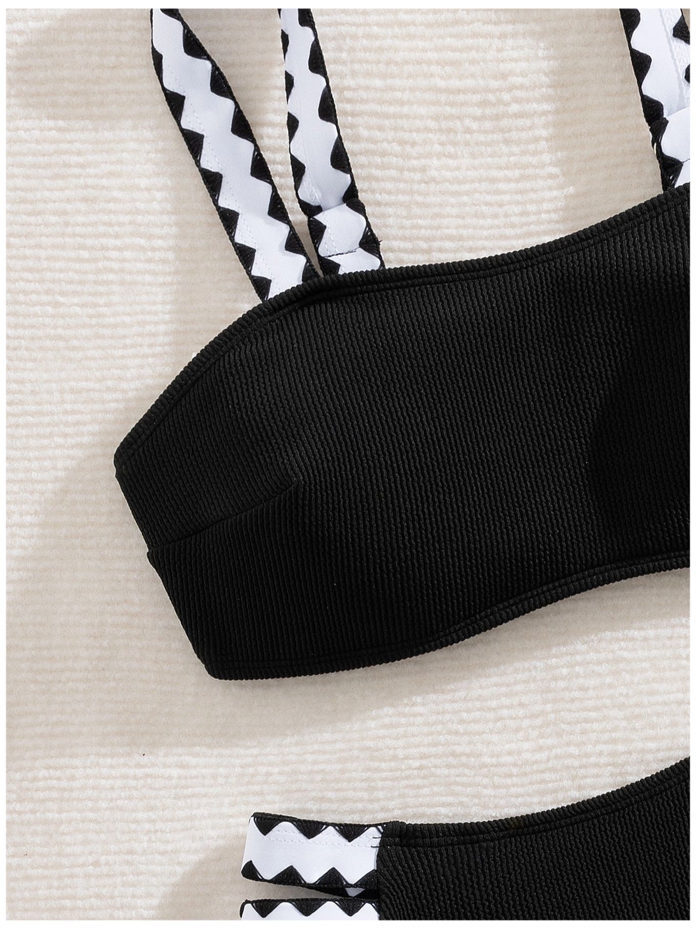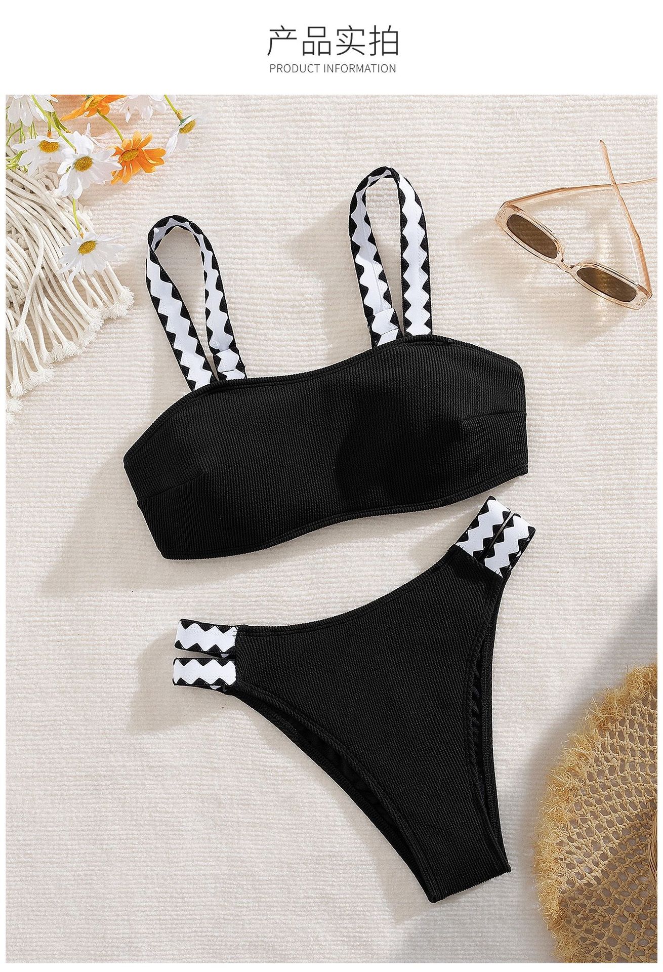 유럽과 미국 스타일의 섹시한 비키니, 단색 두꺼운 어깨끈 여성 수영복, 스포츠 스타일, 높은 탄력성, 슬림 효과