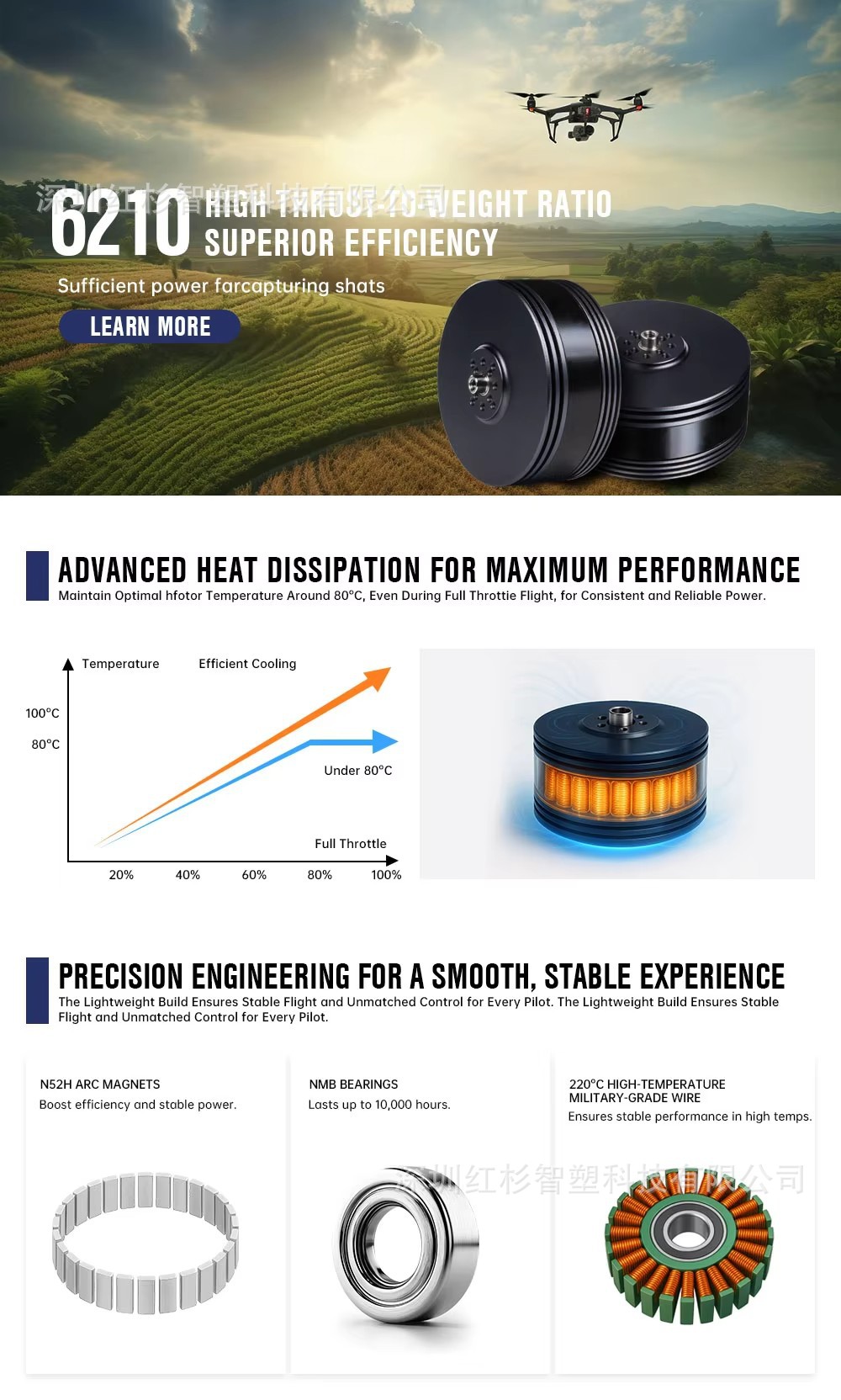 6210 모터 250g 8.3kg 리프팅 브러시리스 모터, 산 촬영용 드론 충격 방지 디자인스토어 가기