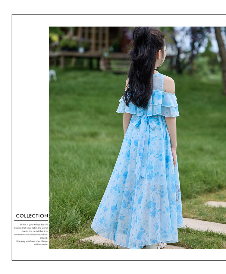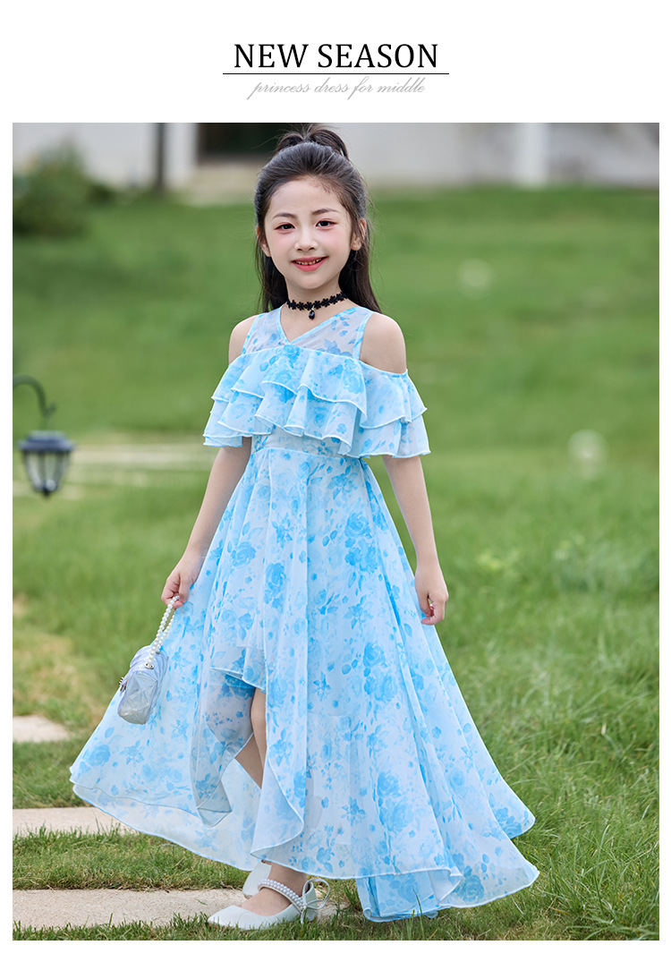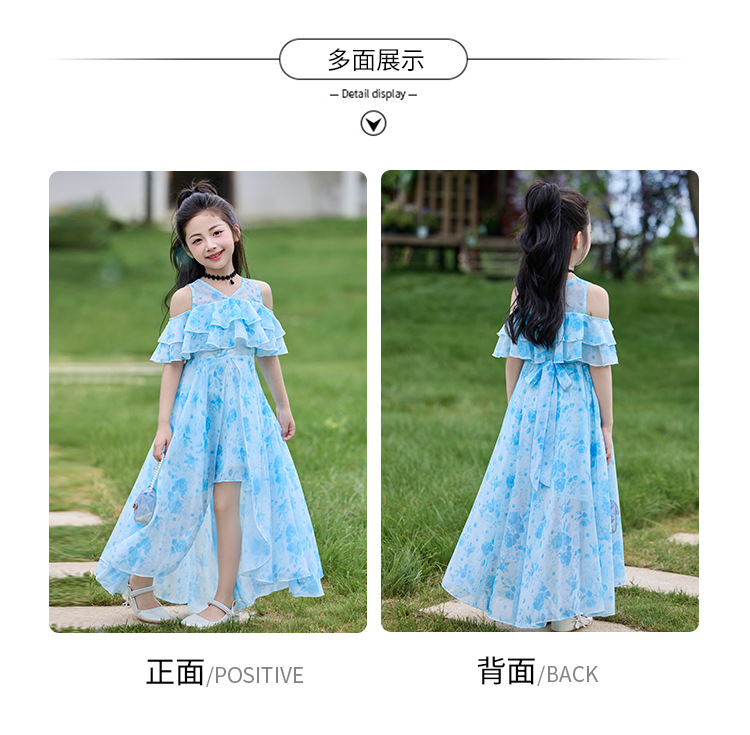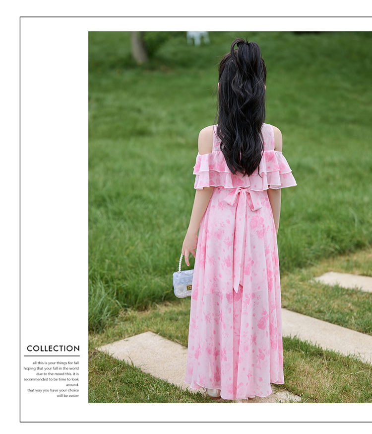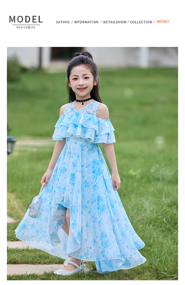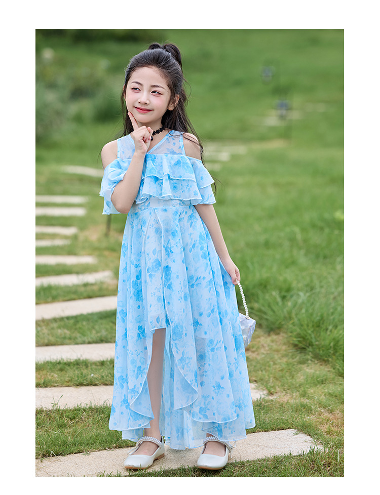 여자 여름 꽃무늬 드레스 2025 새로운 스타일 유행 해변 스커트 서양식 테일 쉬폰 오프 숄더 스커트스토어 가기