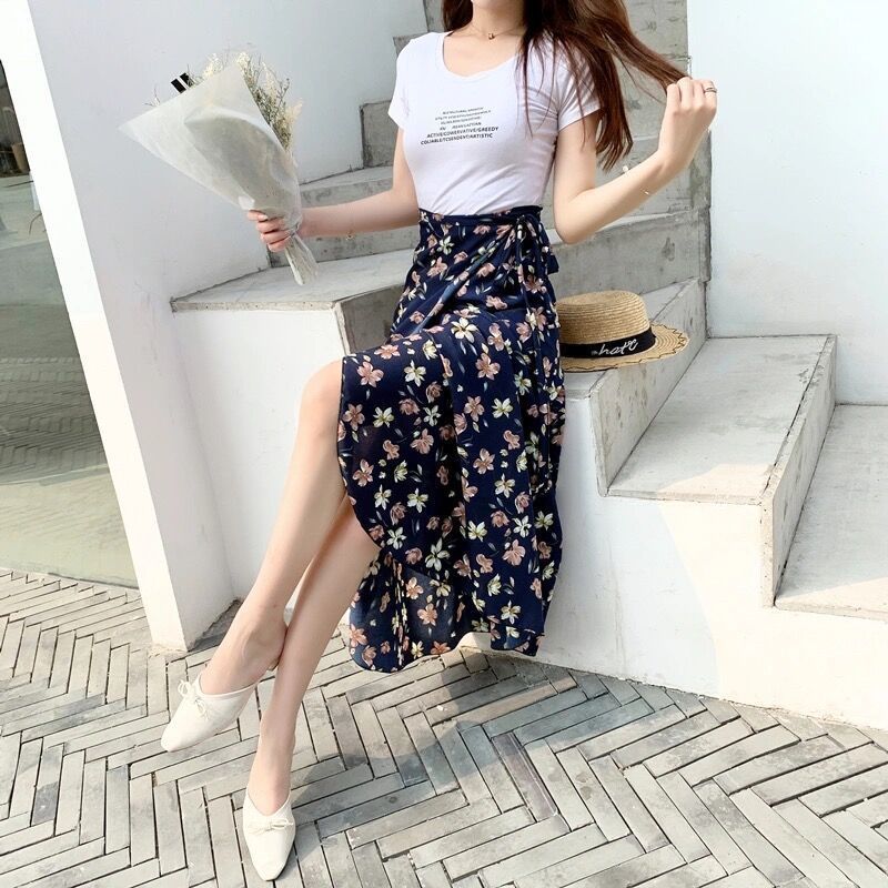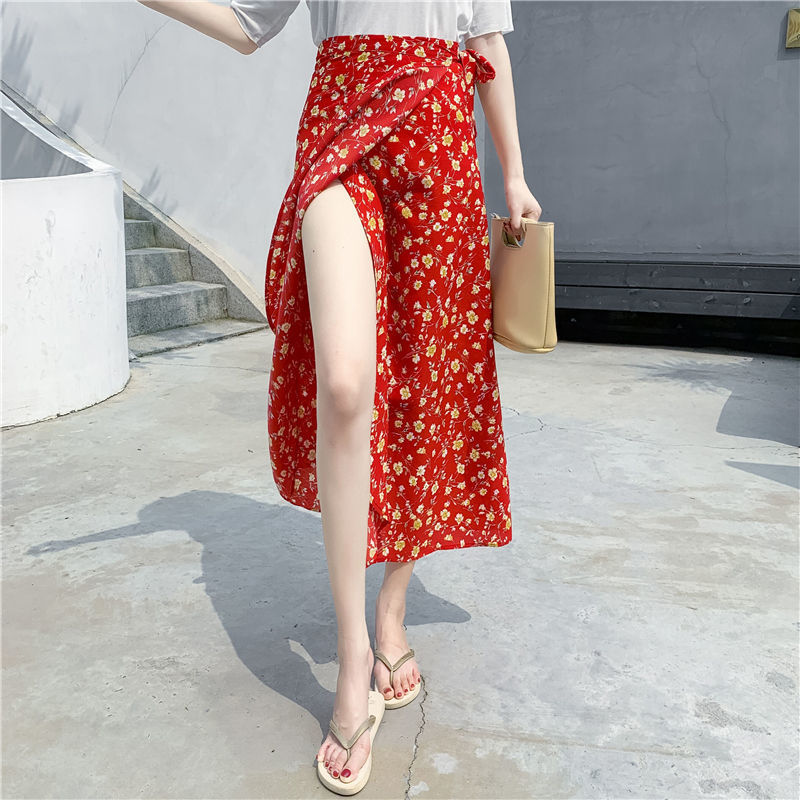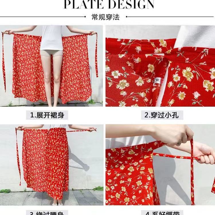수영복 하의 커버 스커트 여름 통기성 꽃무늬 원피스 레이스 업 스커트 중간 길이 루즈 비치 스커트스토어 가기