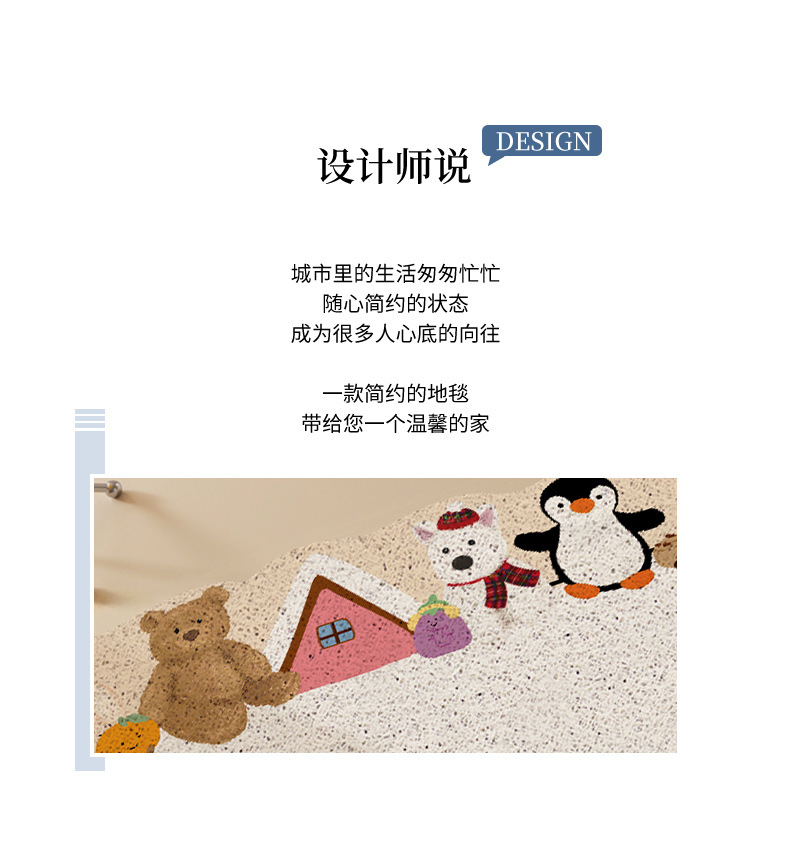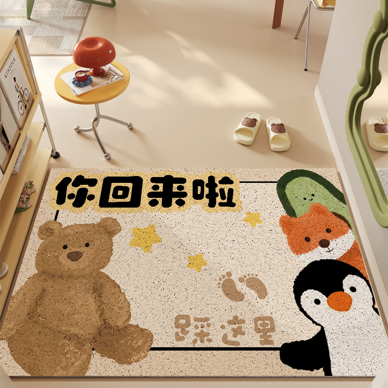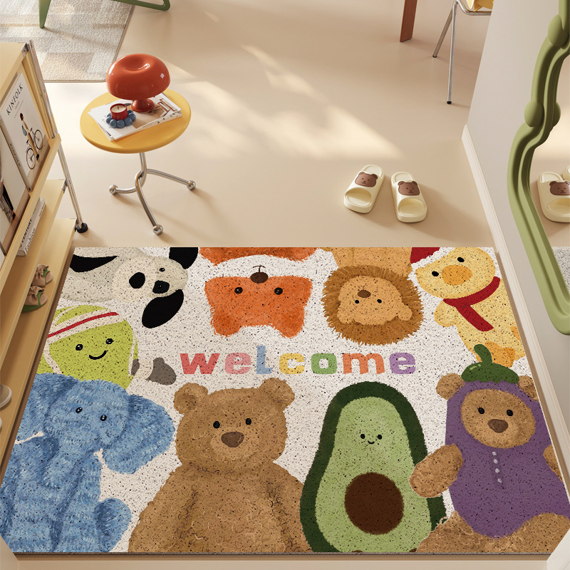 귀여운 동물 파티 입구 바닥 매트, 현관 입구 문 스크래퍼, 실크 링 바닥 매트, 가정용 얼룩 방지 발 매트