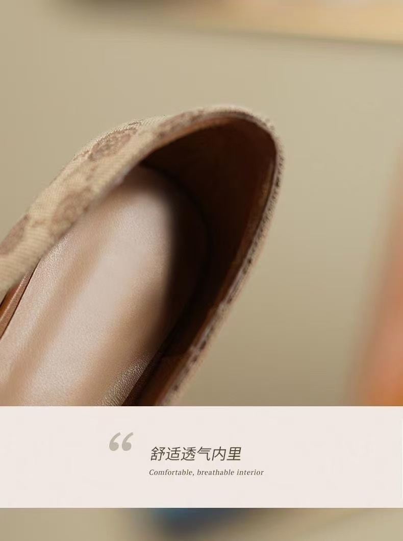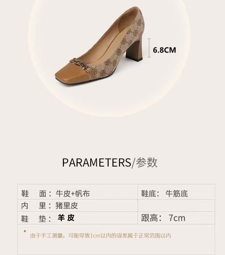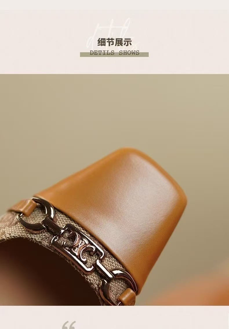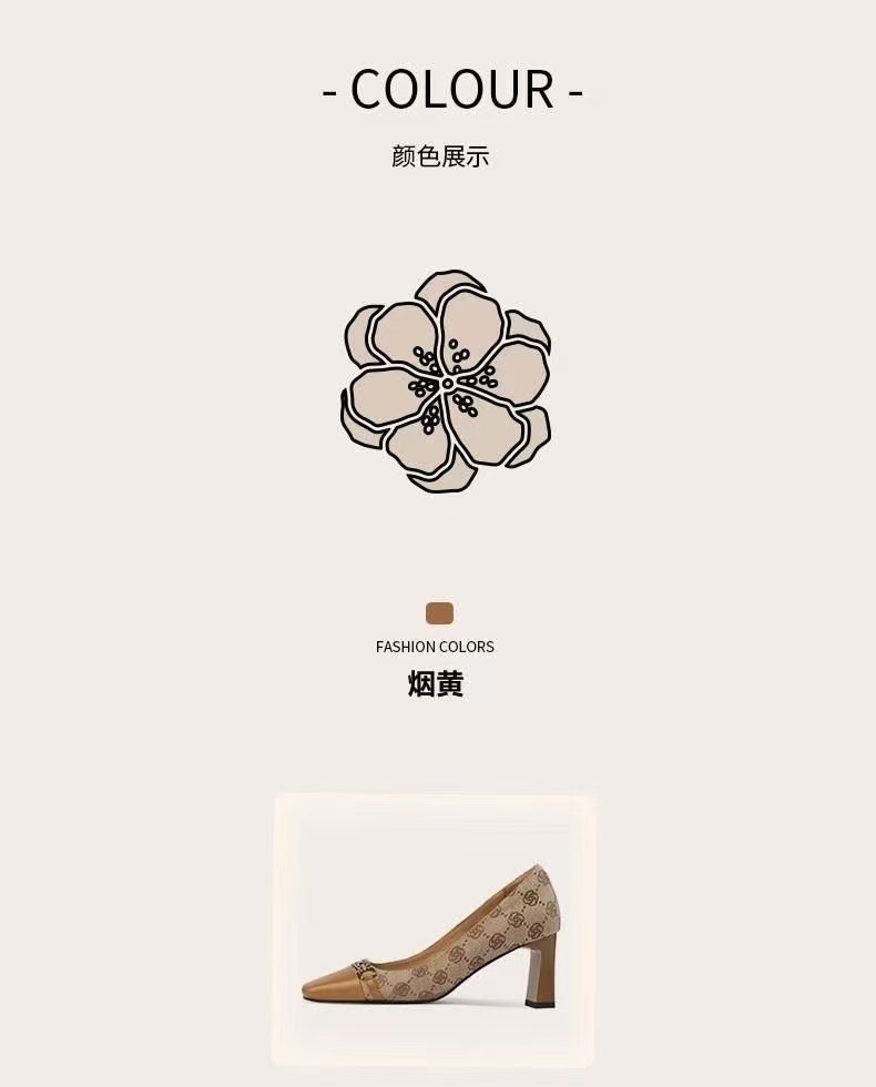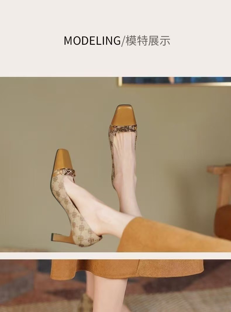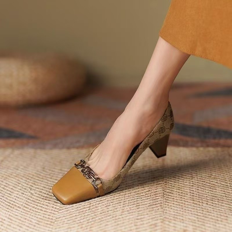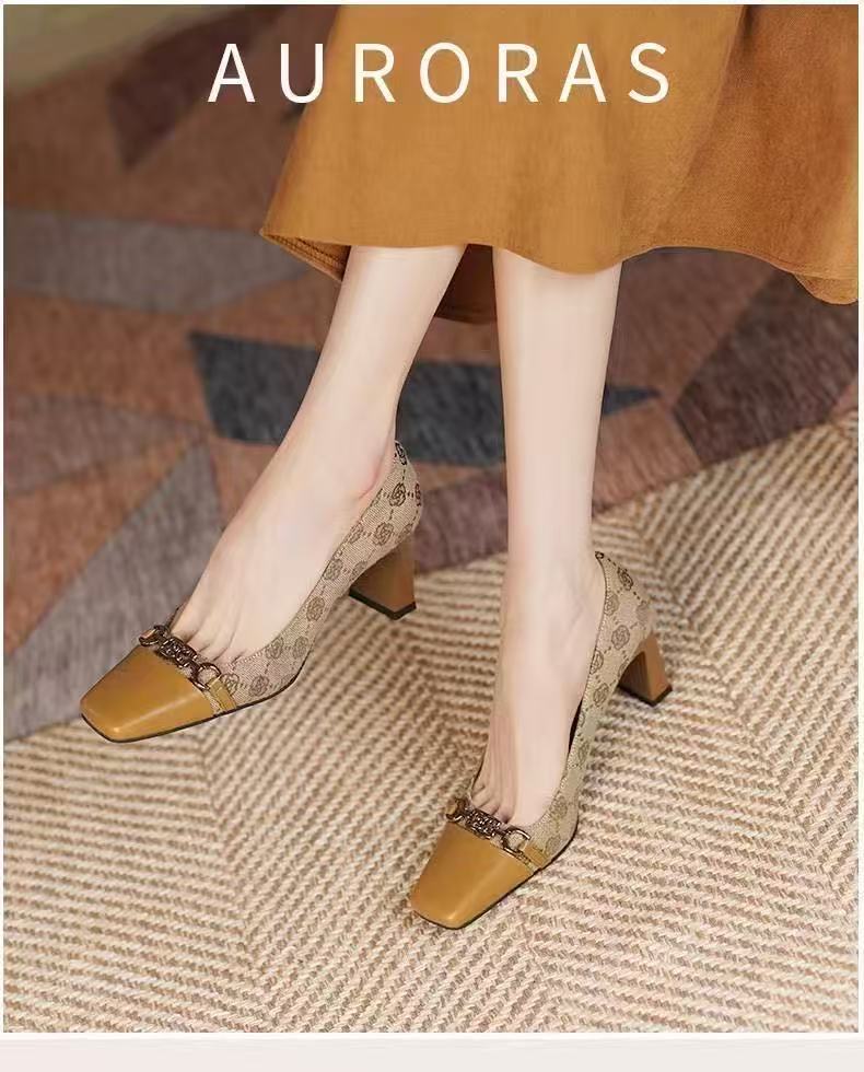 샤오샹풍 배색 미들힐 슈즈, 얕은 굽의 부드러운 가죽 여성화, 2022 가을 신상, 다용도 두꺼운 굽 프렌치 하이힐스토어 가기