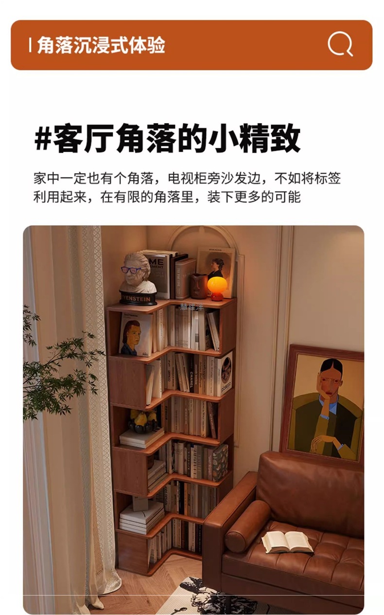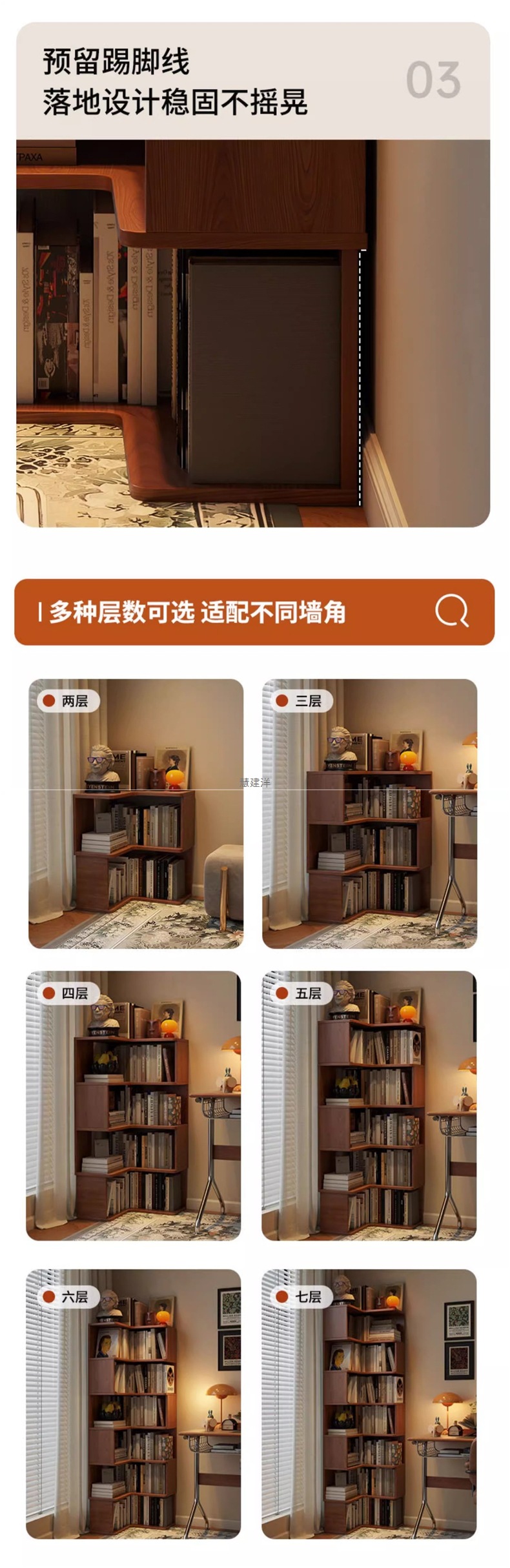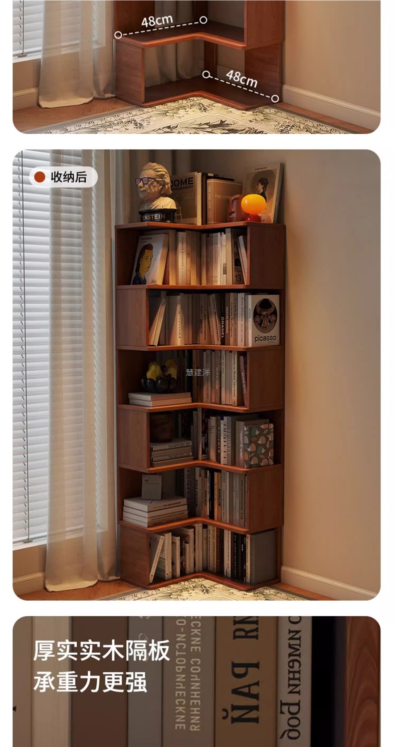 단단한 나무 코어 코너 책장 거실 벽 코너 바닥 스탠딩 스토리지 랙 홈 코너 스토리지 캐비닛 좁은 틈새 책장