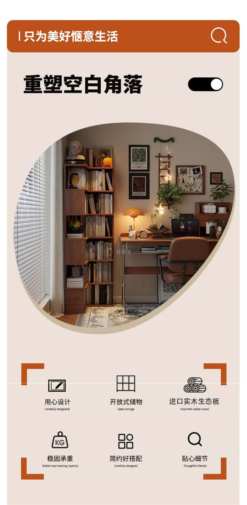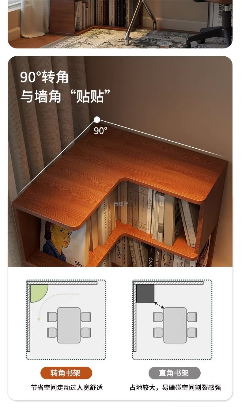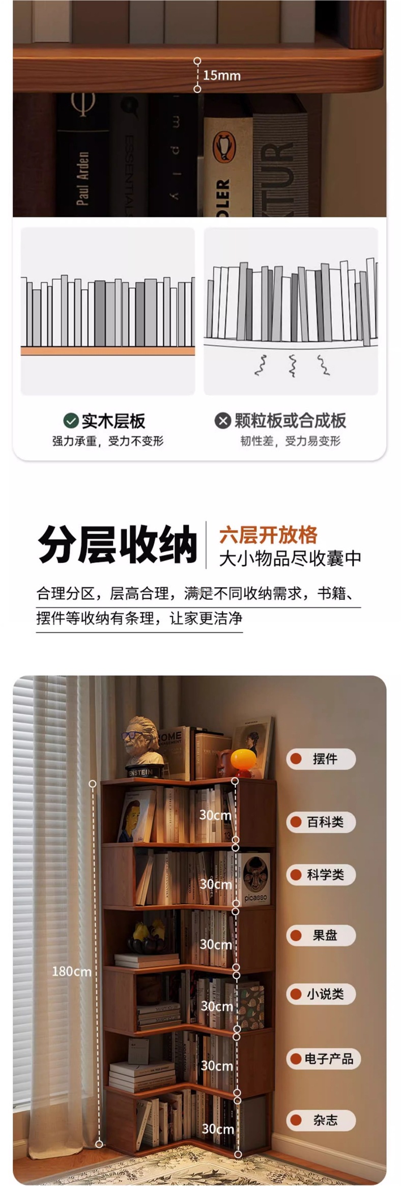 단단한 나무 코어 코너 책장 거실 벽 코너 바닥 스탠딩 스토리지 랙 홈 코너 스토리지 캐비닛 좁은 틈새 책장