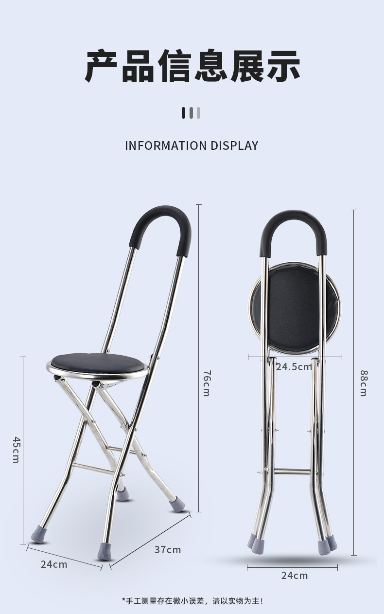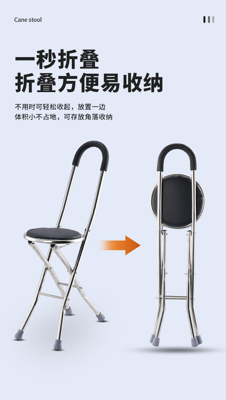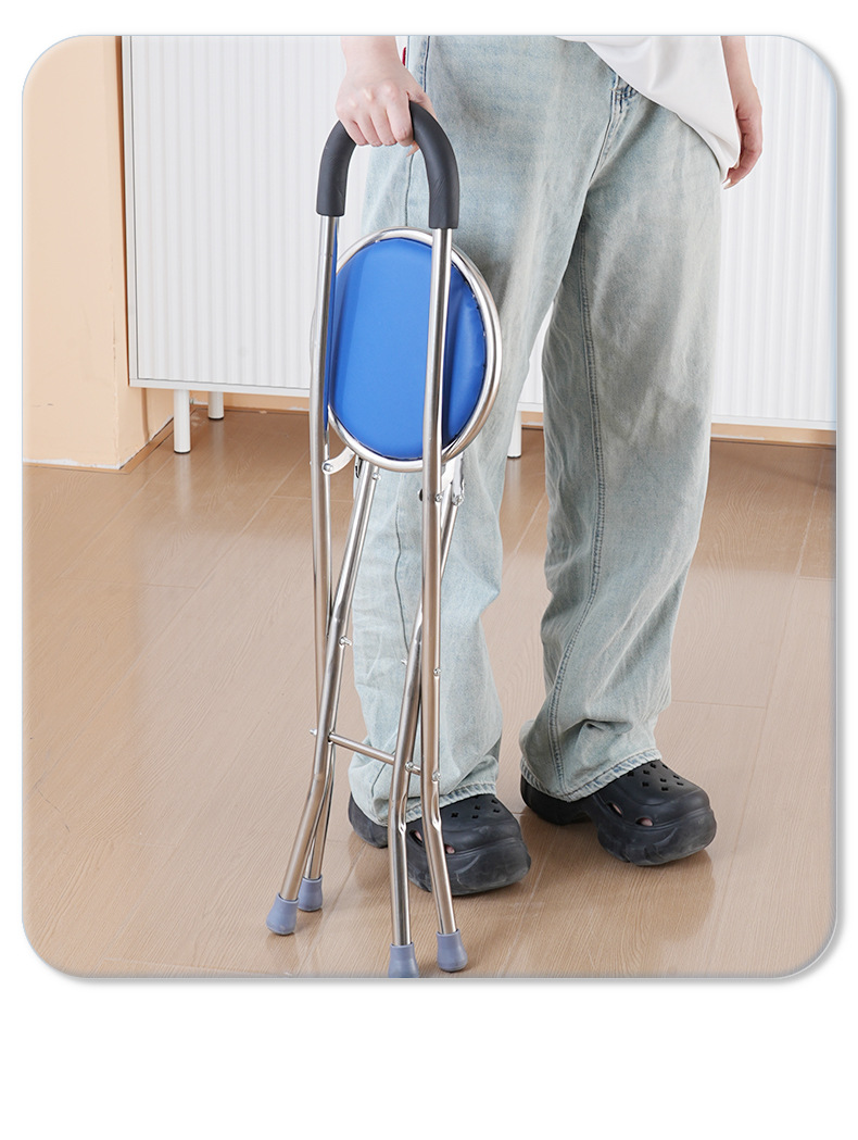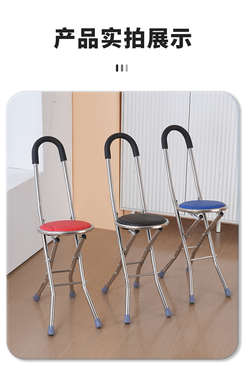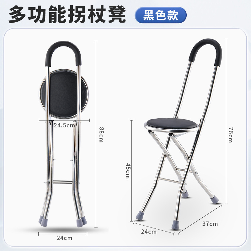 手杖凳四腿拐杖凳防滑老年人折叠椅两用手杖不锈钢登山杖手杖凳