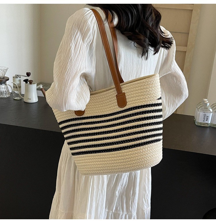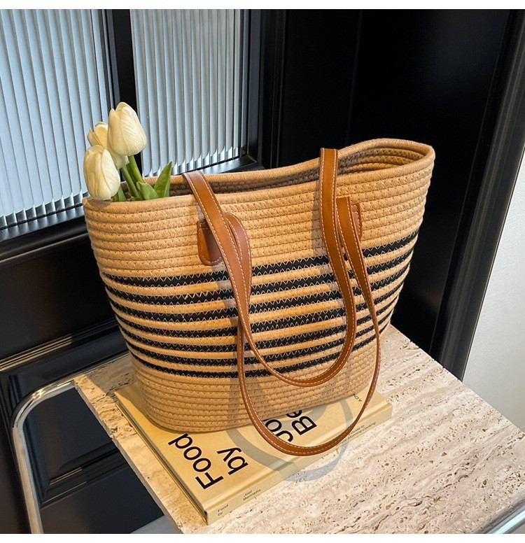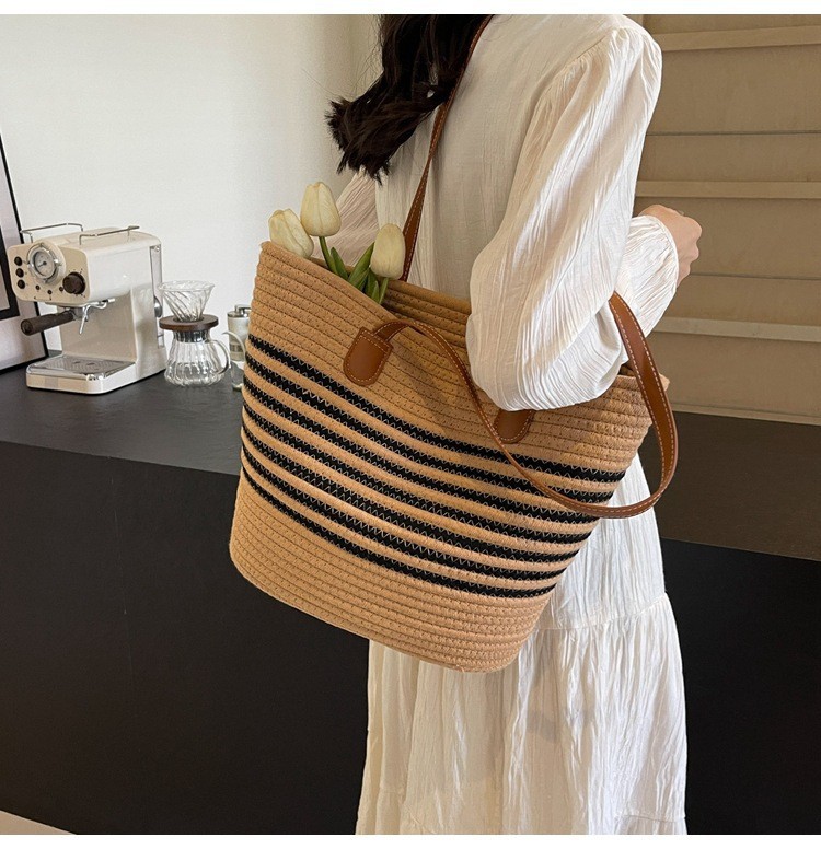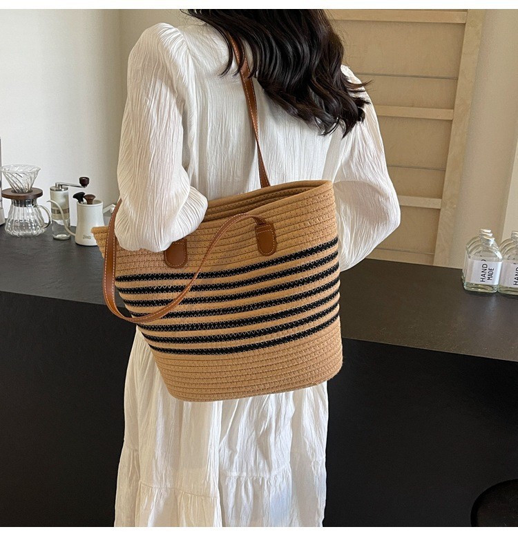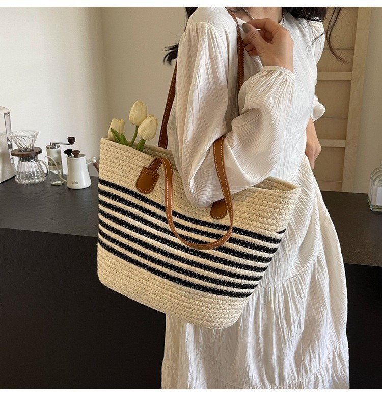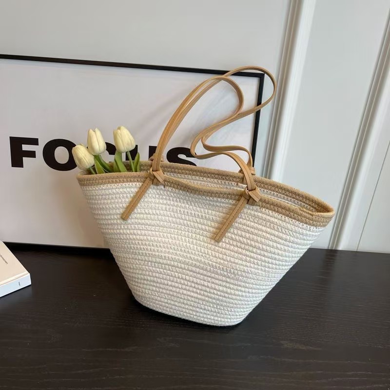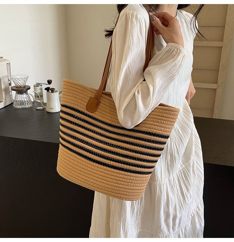 트렌디한 숄더 밀짚 가방 2025 새로운 여성용 가방 짠 가방 해변 휴가 휴대용 비치 가방 다용도 토트 백스토어 가기