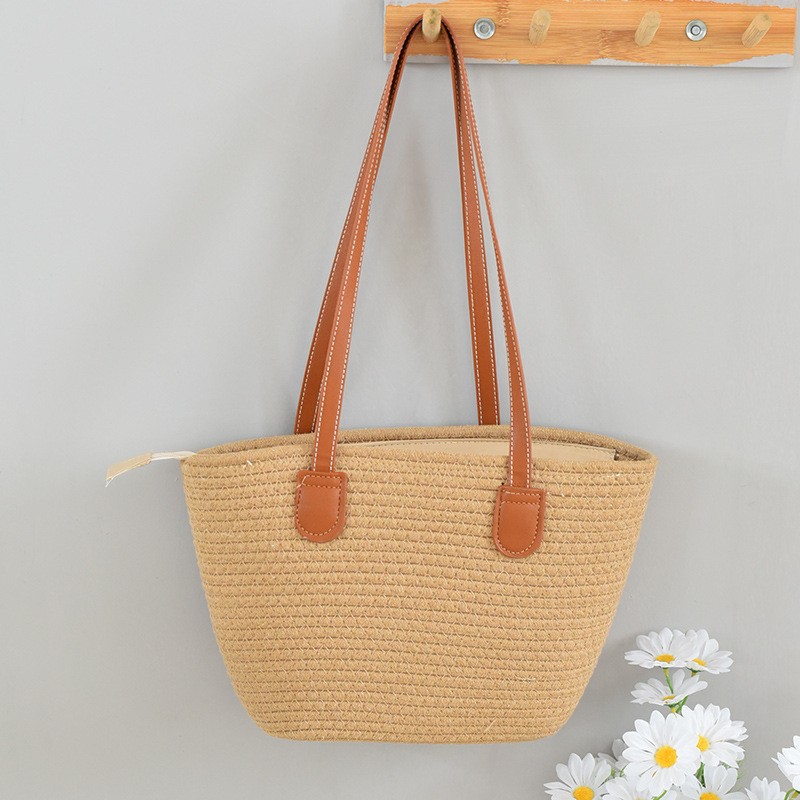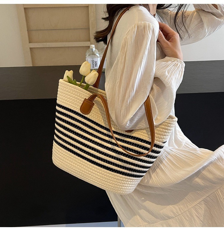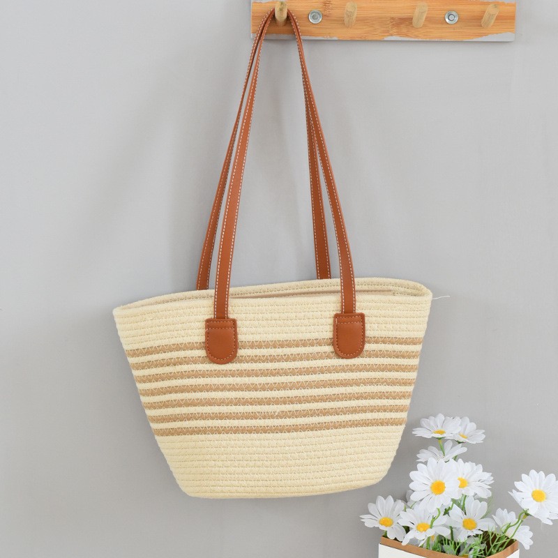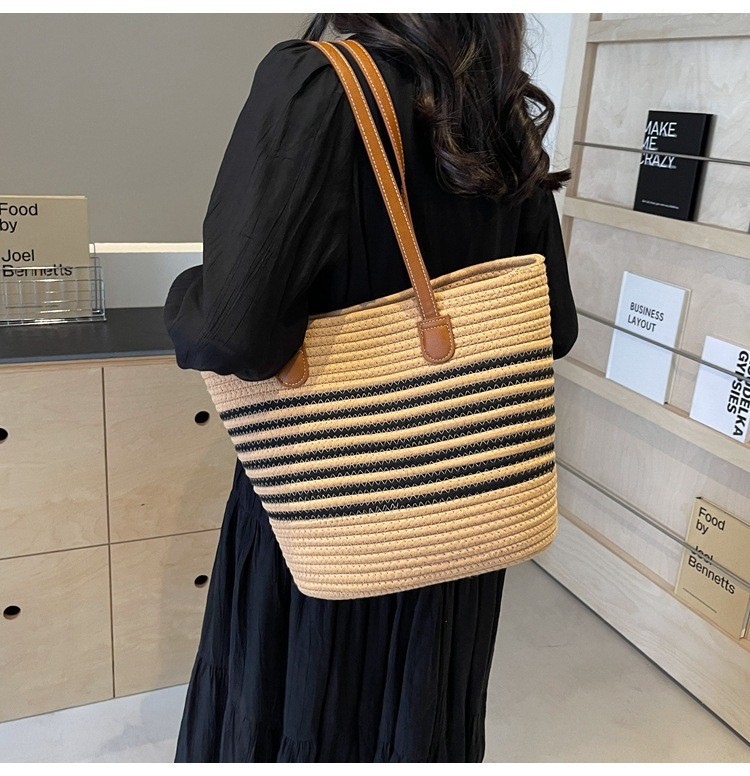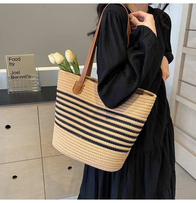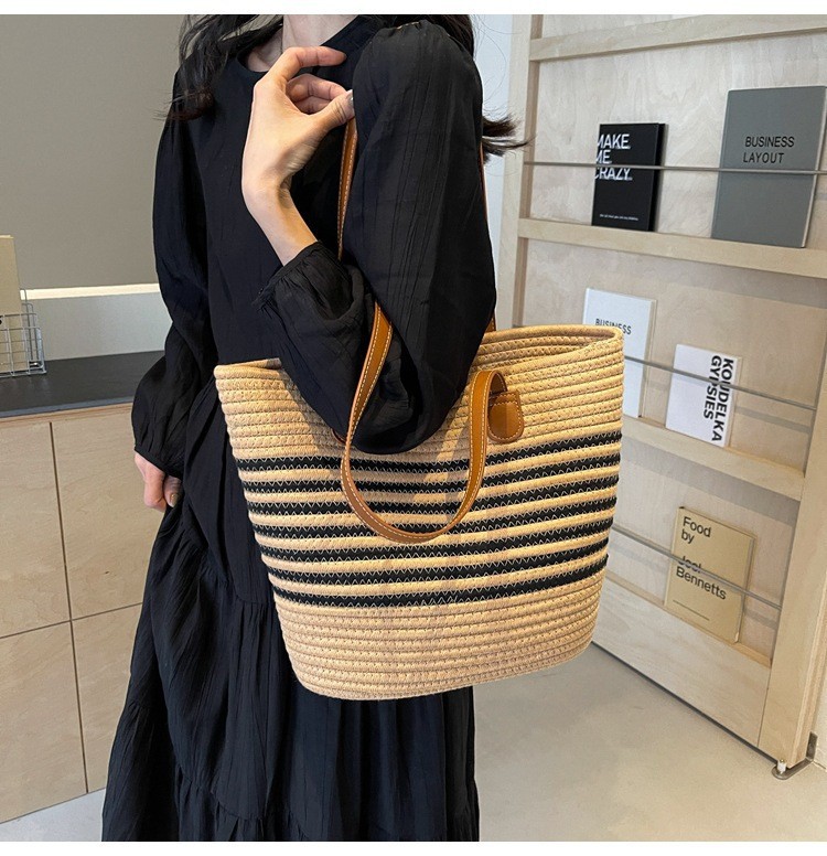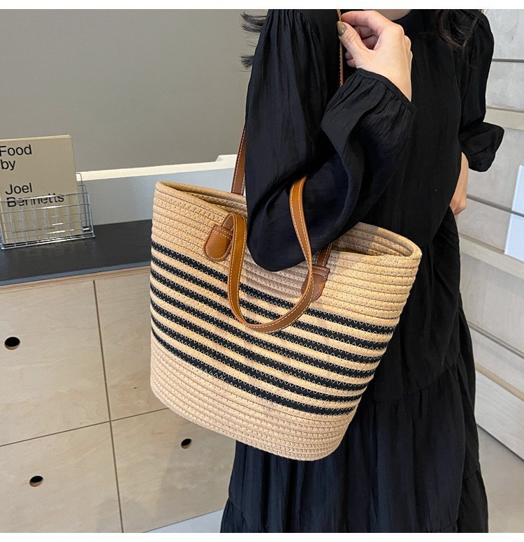 트렌디한 숄더 밀짚 가방 2025 새로운 여성용 가방 짠 가방 해변 휴가 휴대용 비치 가방 다용도 토트 백스토어 가기