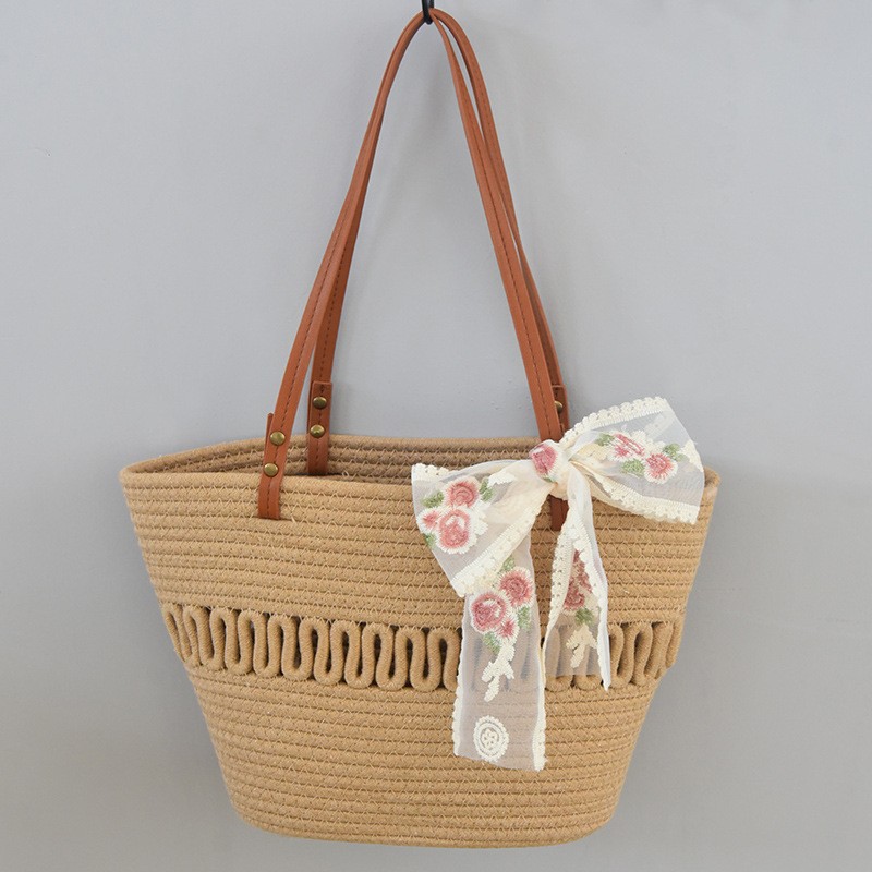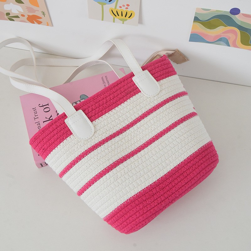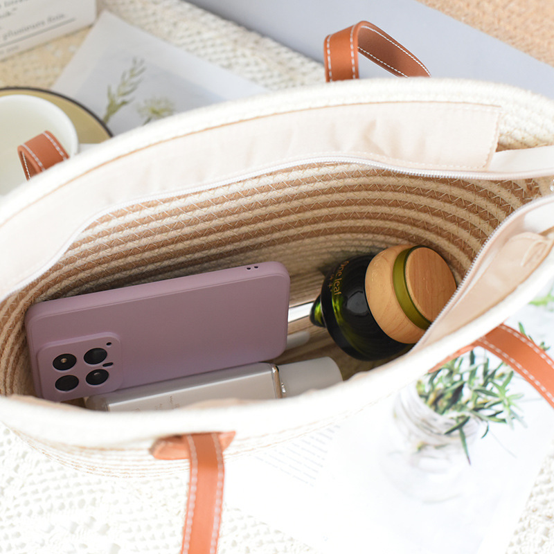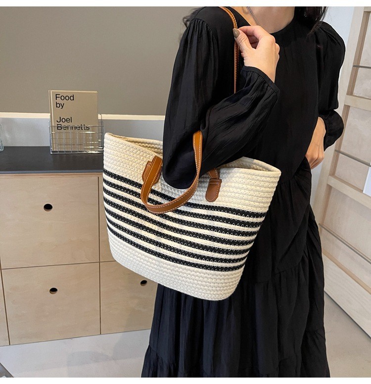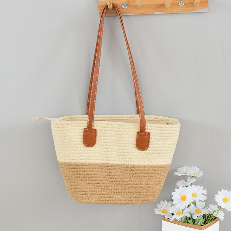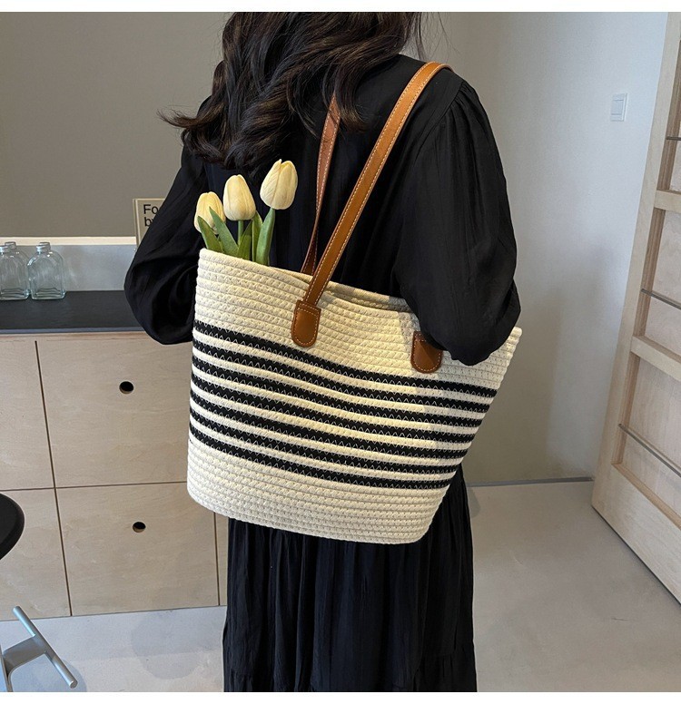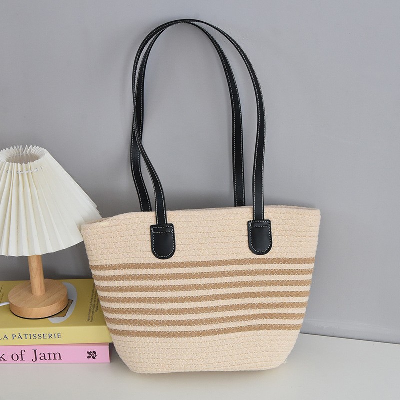 트렌디한 숄더 밀짚 가방 2025 새로운 여성용 가방 짠 가방 해변 휴가 휴대용 비치 가방 다용도 토트 백스토어 가기