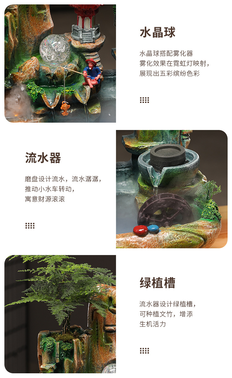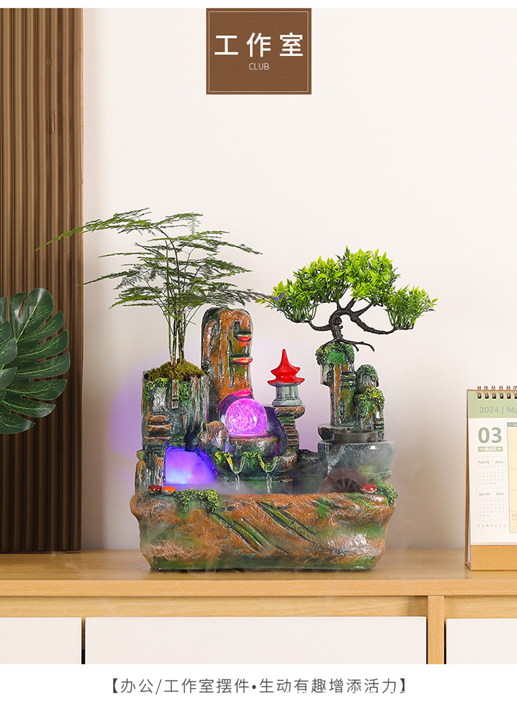 고산 및 흐르는 물 분수 장식품, 풍수 공, 순환 수경, 실내 사무실, 거실, 흐르는 물, 고급 선물스토어 가기