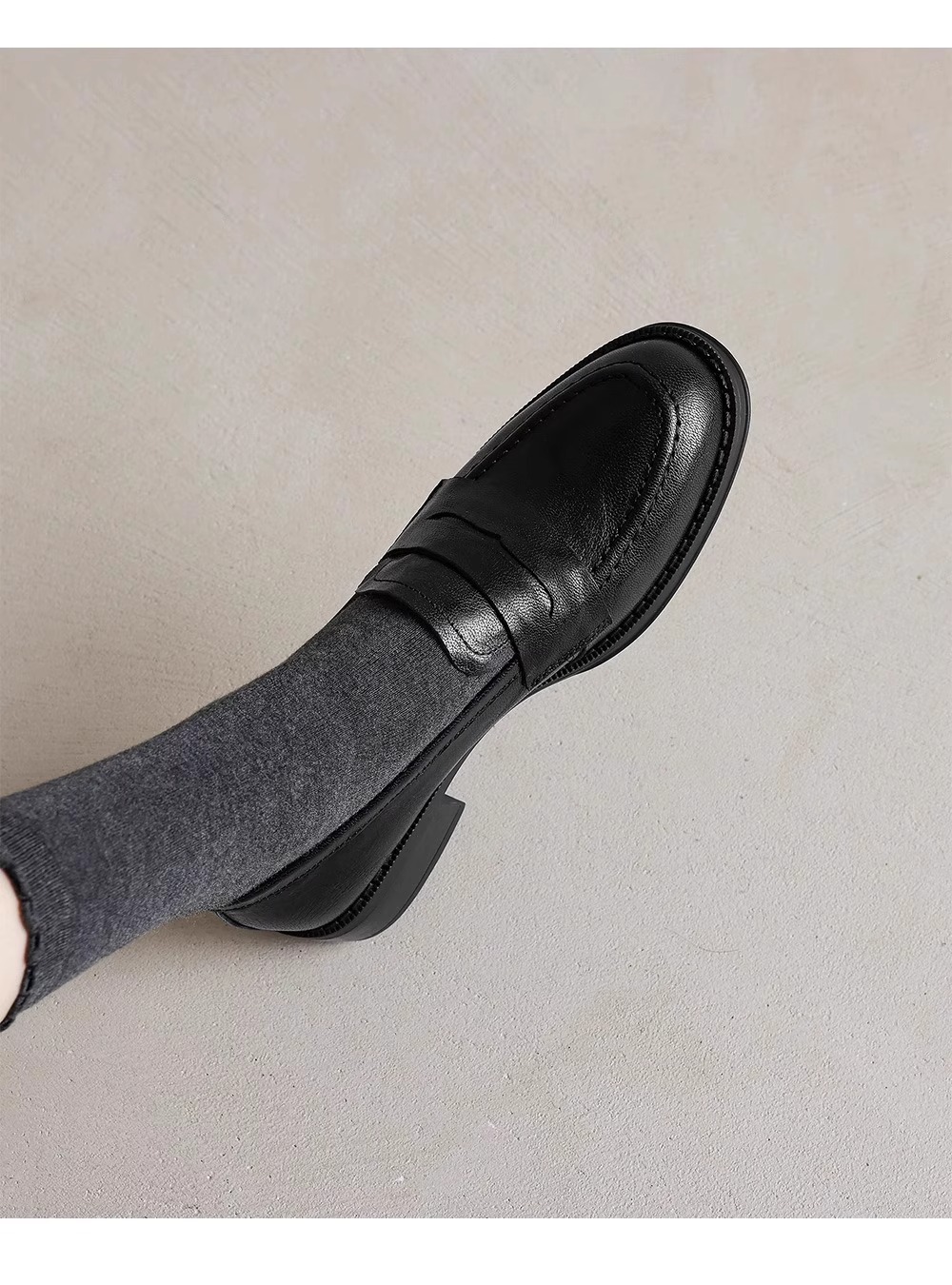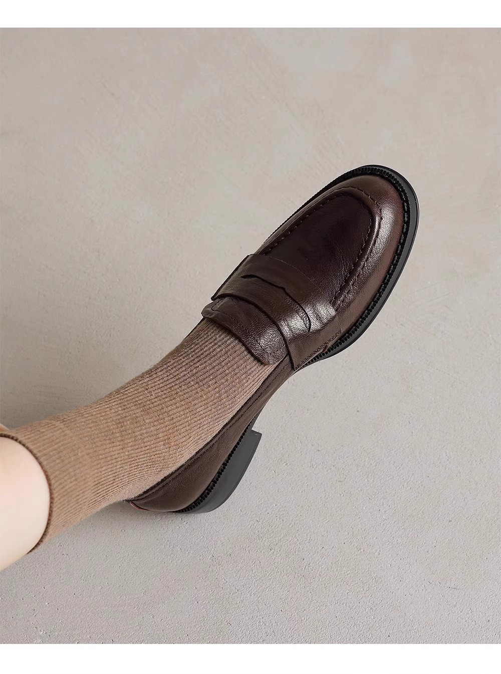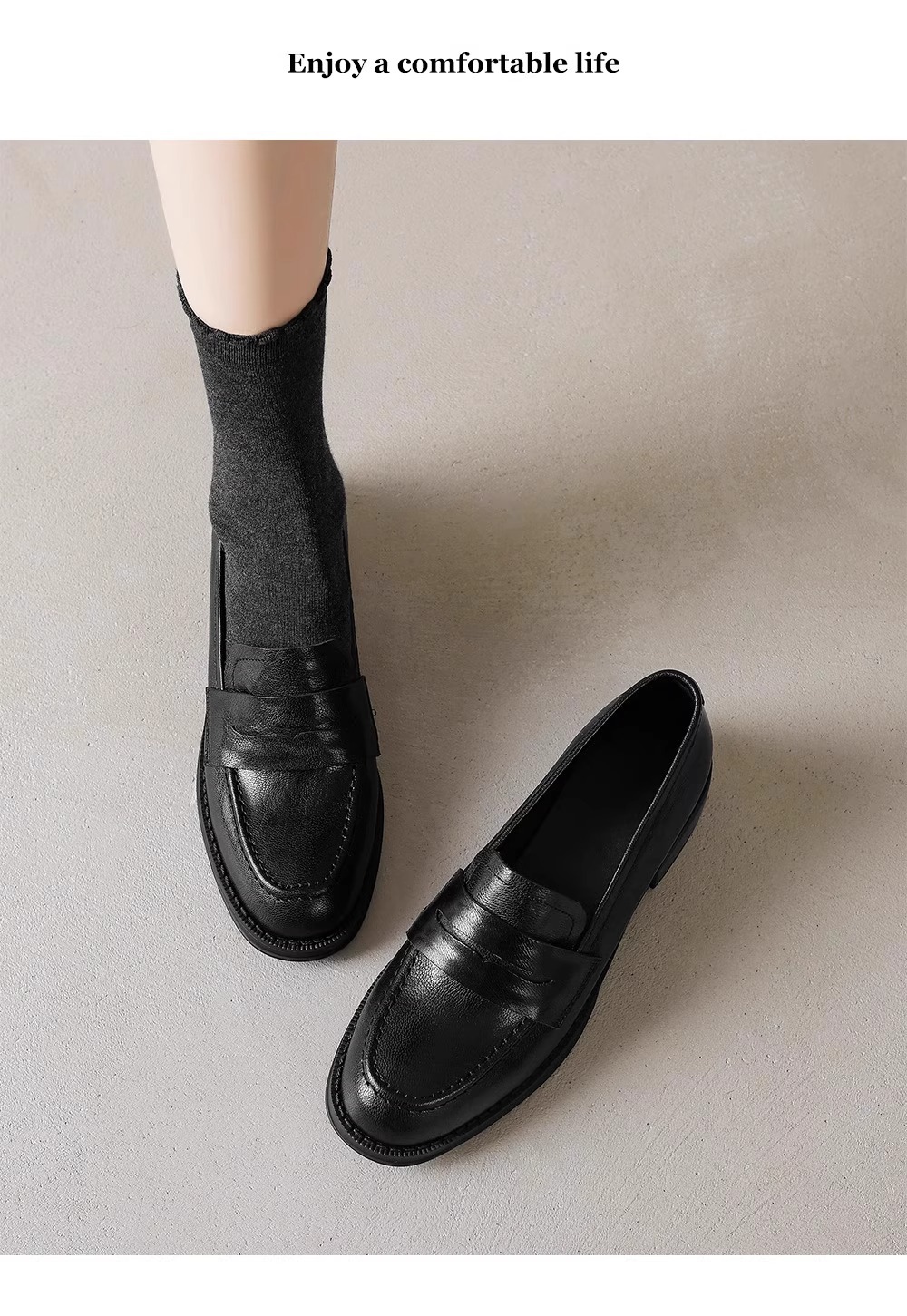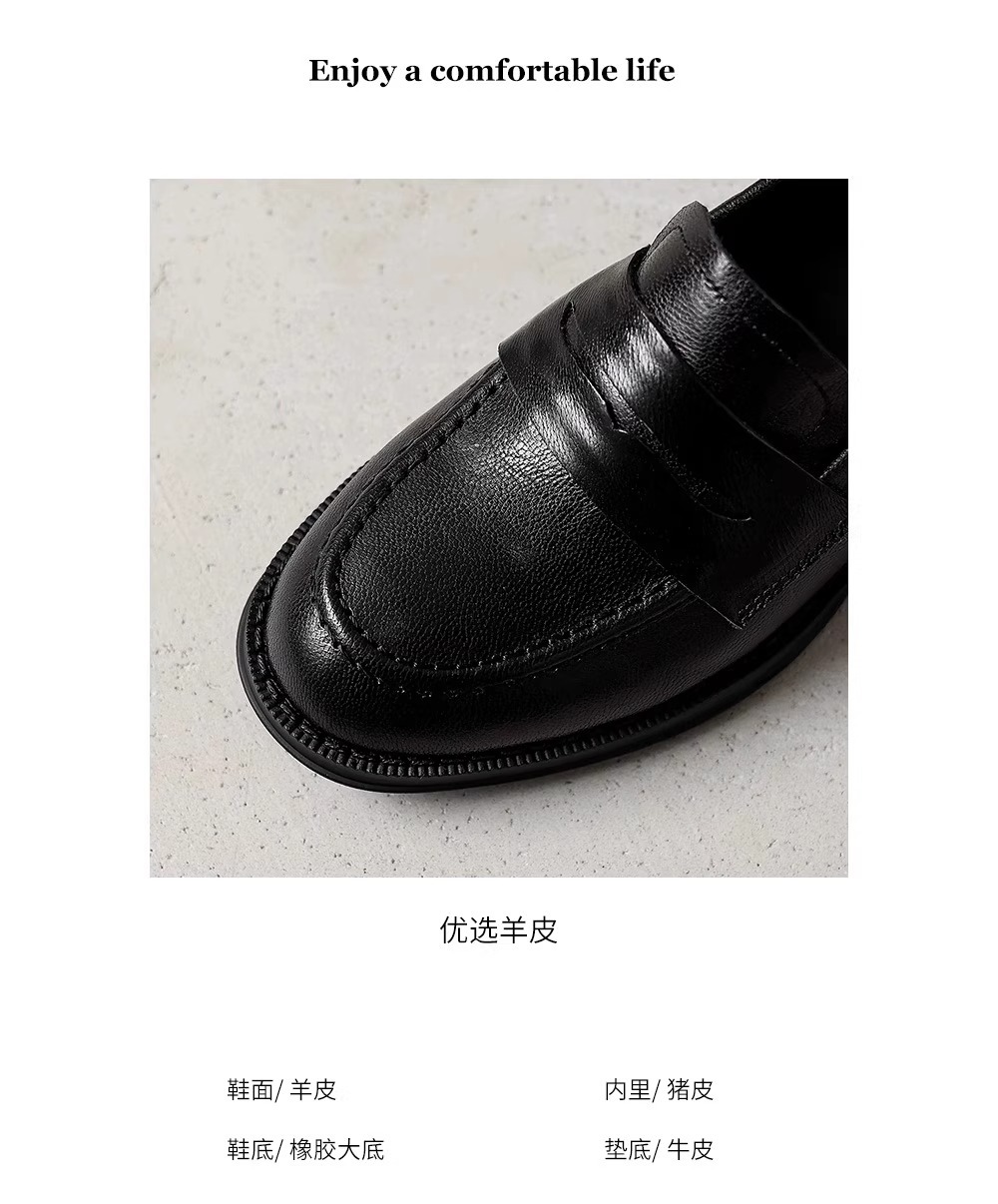 재고 있음 ~ 여성용 슈퍼 소프트 양가죽 버전 두꺼운 굽 로퍼 2025 새로운 라운드 토 천연 가죽 슬립온 다용도 소형 가죽 신발