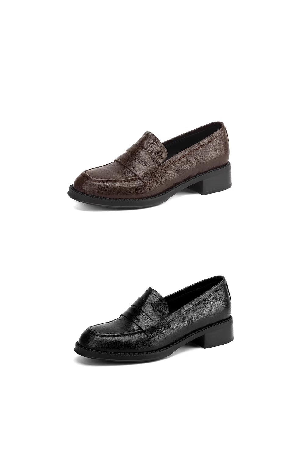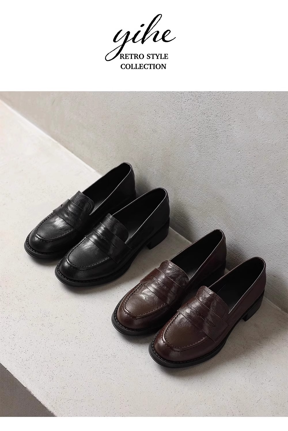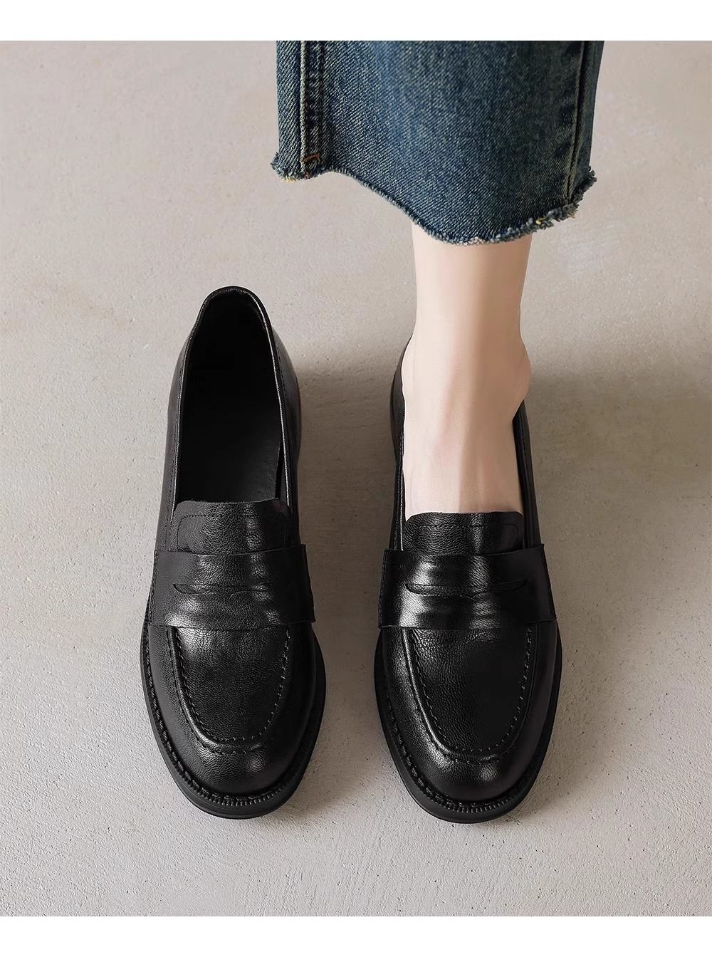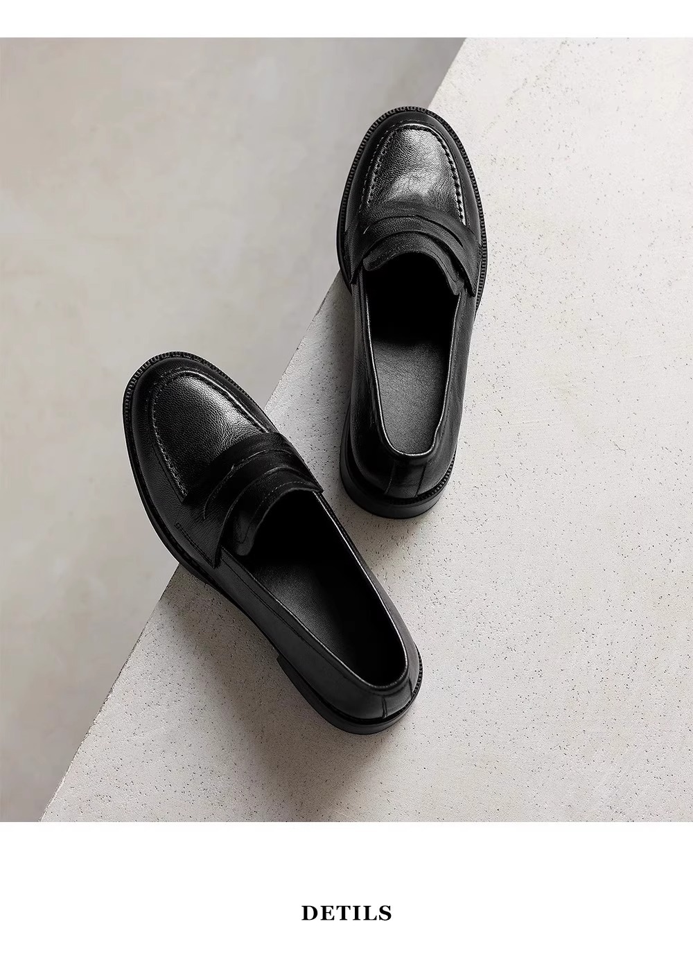 재고 있음 ~ 여성용 슈퍼 소프트 양가죽 버전 두꺼운 굽 로퍼 2025 새로운 라운드 토 천연 가죽 슬립온 다용도 소형 가죽 신발