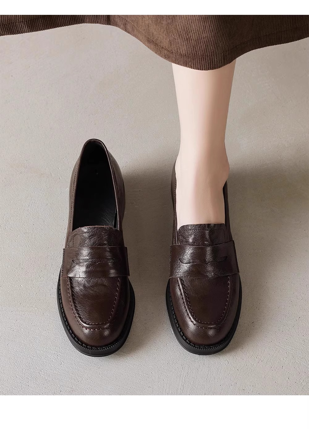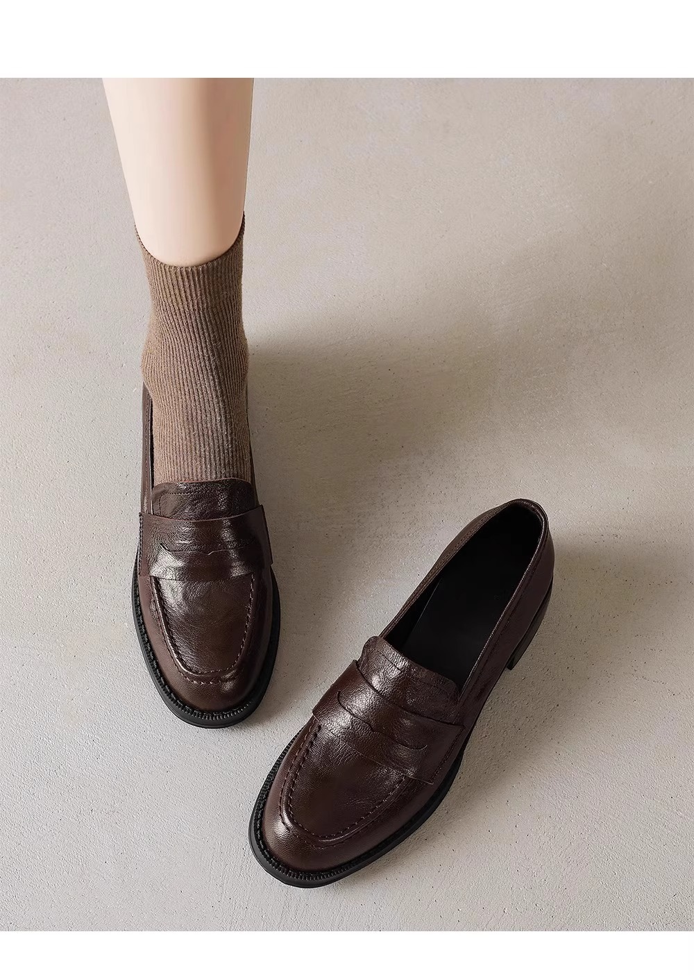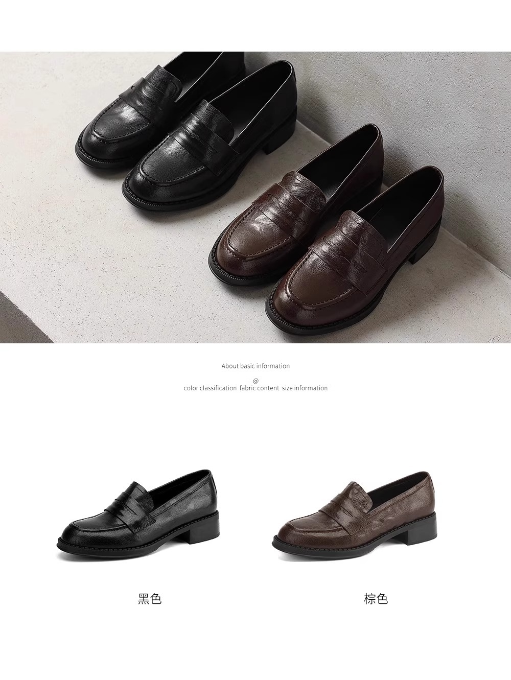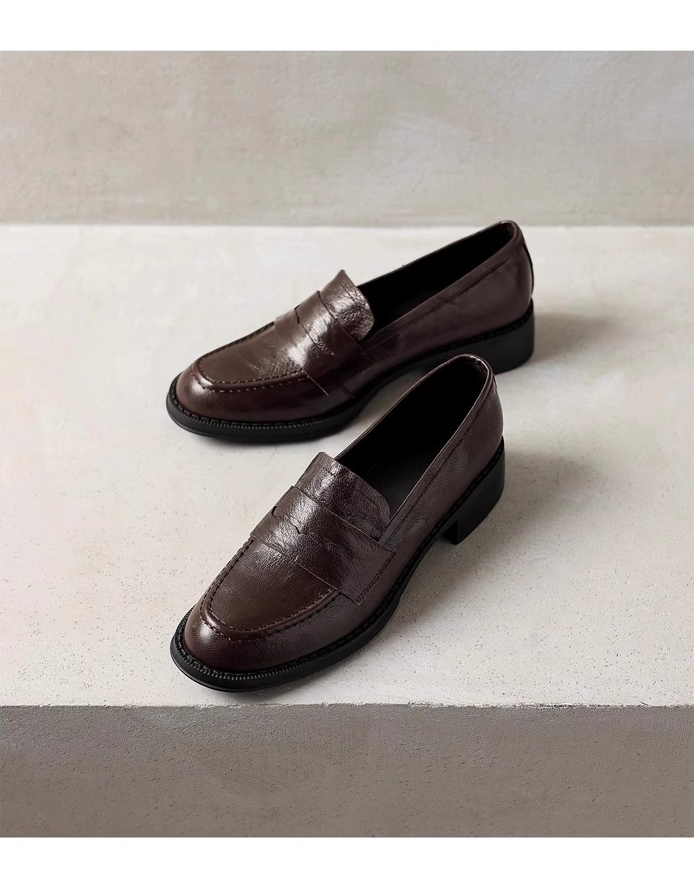 재고 있음 ~ 여성용 슈퍼 소프트 양가죽 버전 두꺼운 굽 로퍼 2025 새로운 라운드 토 천연 가죽 슬립온 다용도 소형 가죽 신발