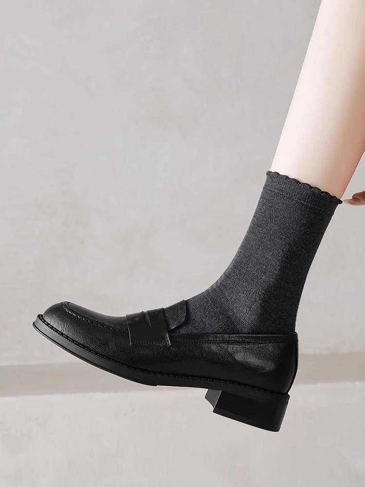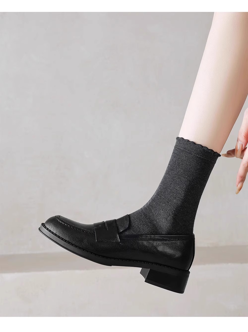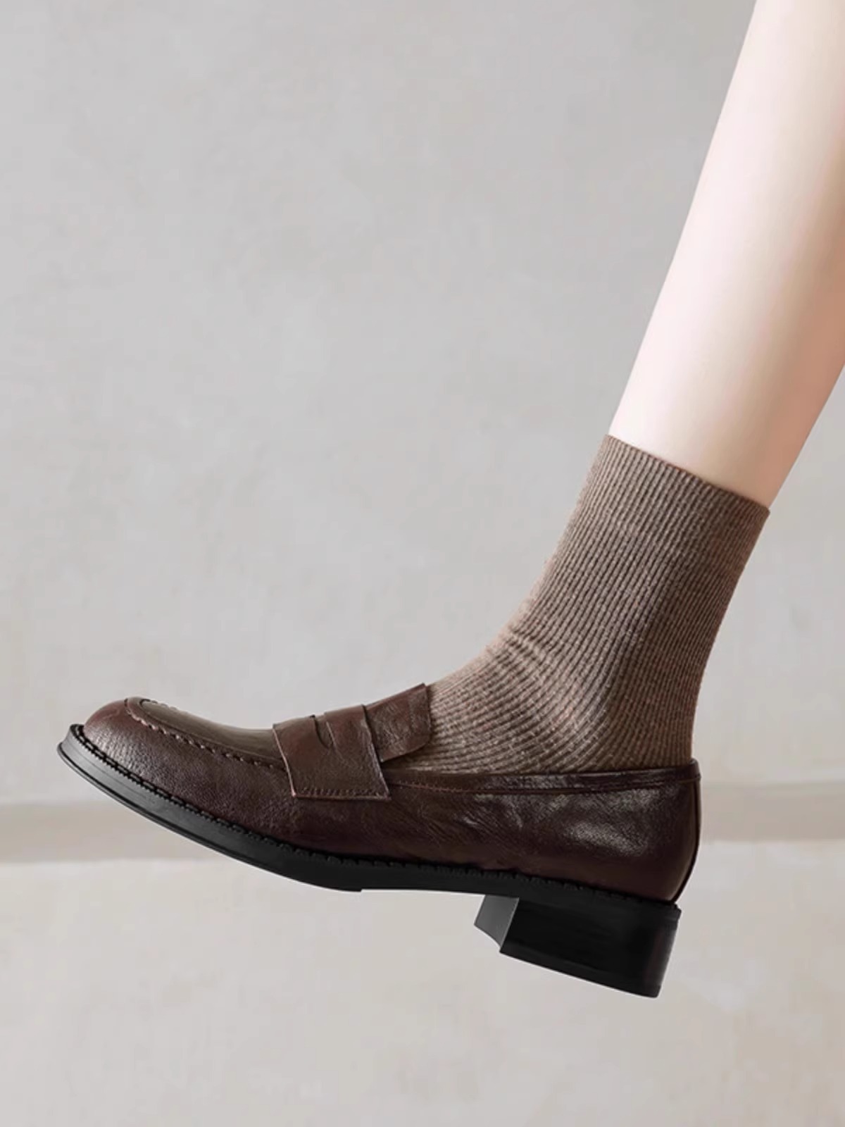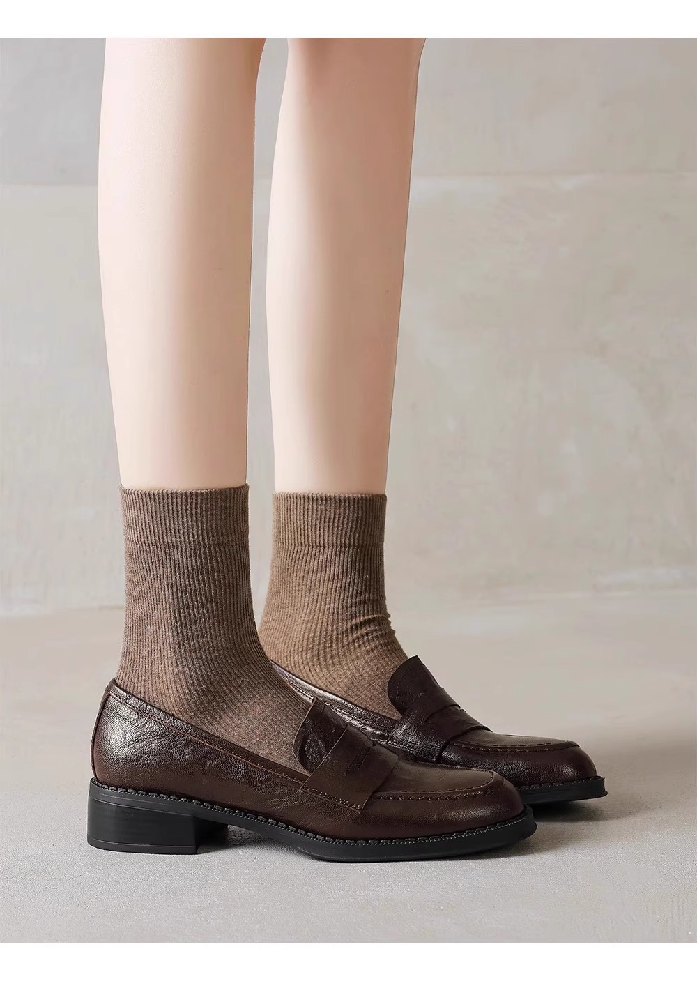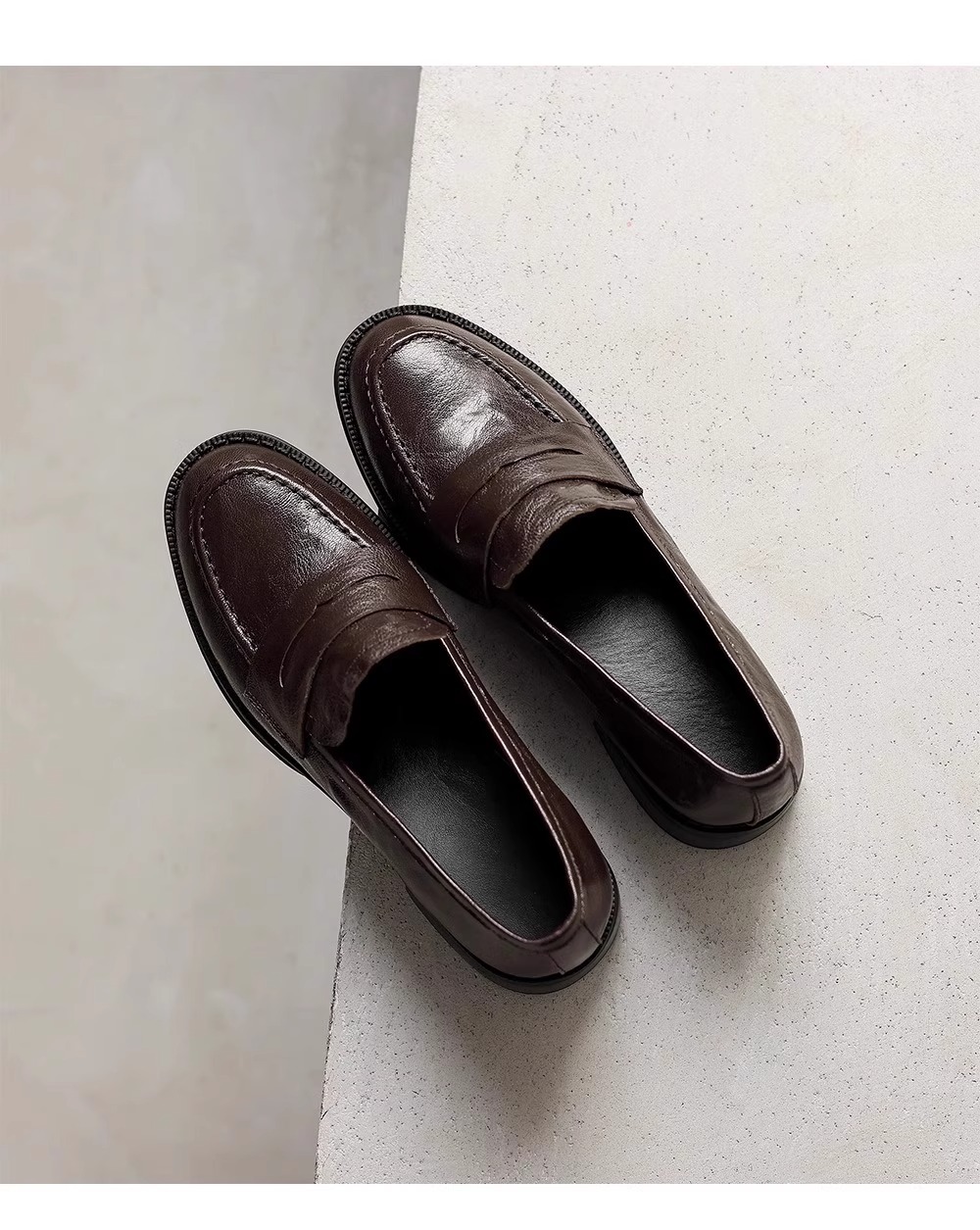 재고 있음 ~ 여성용 슈퍼 소프트 양가죽 버전 두꺼운 굽 로퍼 2025 새로운 라운드 토 천연 가죽 슬립온 다용도 소형 가죽 신발