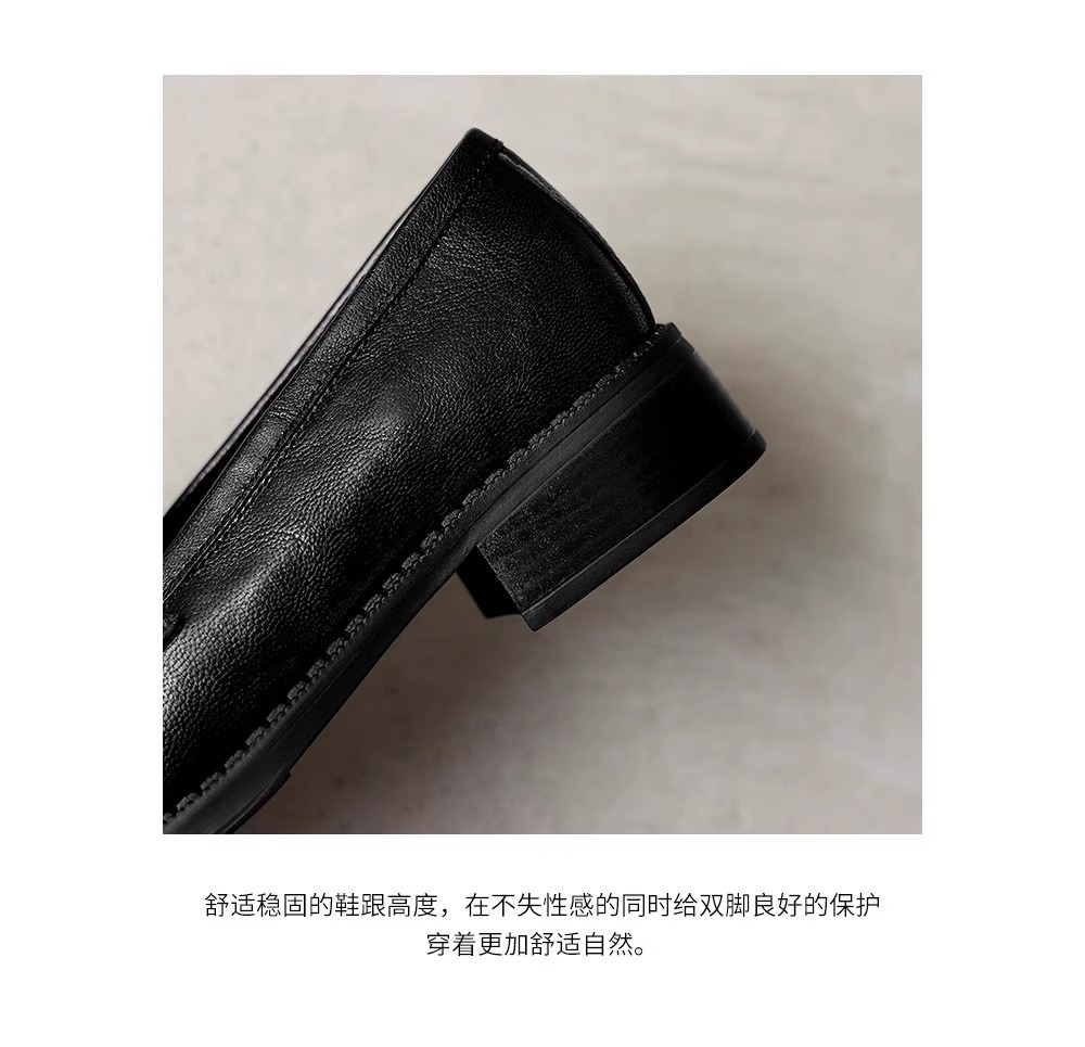 재고 있음 ~ 여성용 슈퍼 소프트 양가죽 버전 두꺼운 굽 로퍼 2025 새로운 라운드 토 천연 가죽 슬립온 다용도 소형 가죽 신발스토어 가기