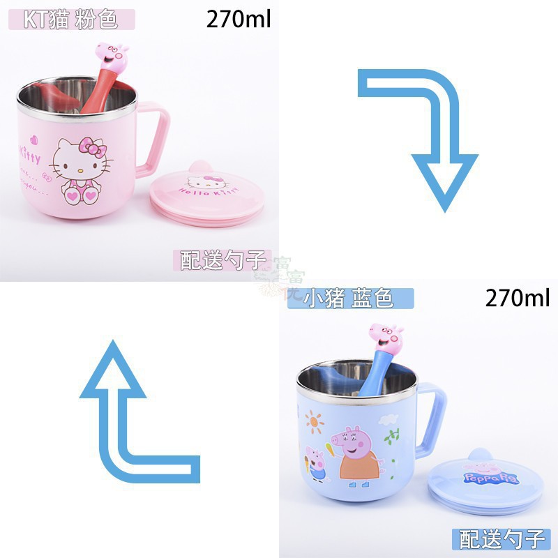 뚜껑이 있는 가정용 스테인레스 스틸 어린이 물컵, 귀여운 만화 어린이 아기 유치원 마시는 컵 낙하 방지