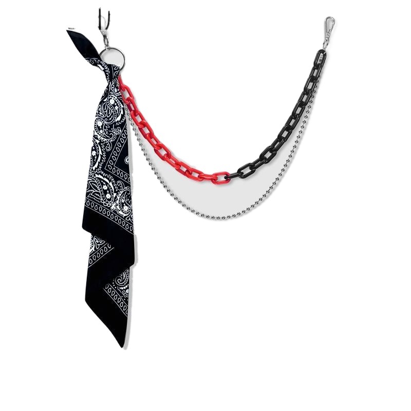 • 블랙 & 레드 더블 체인 + 블랙 스퀘어 스카프