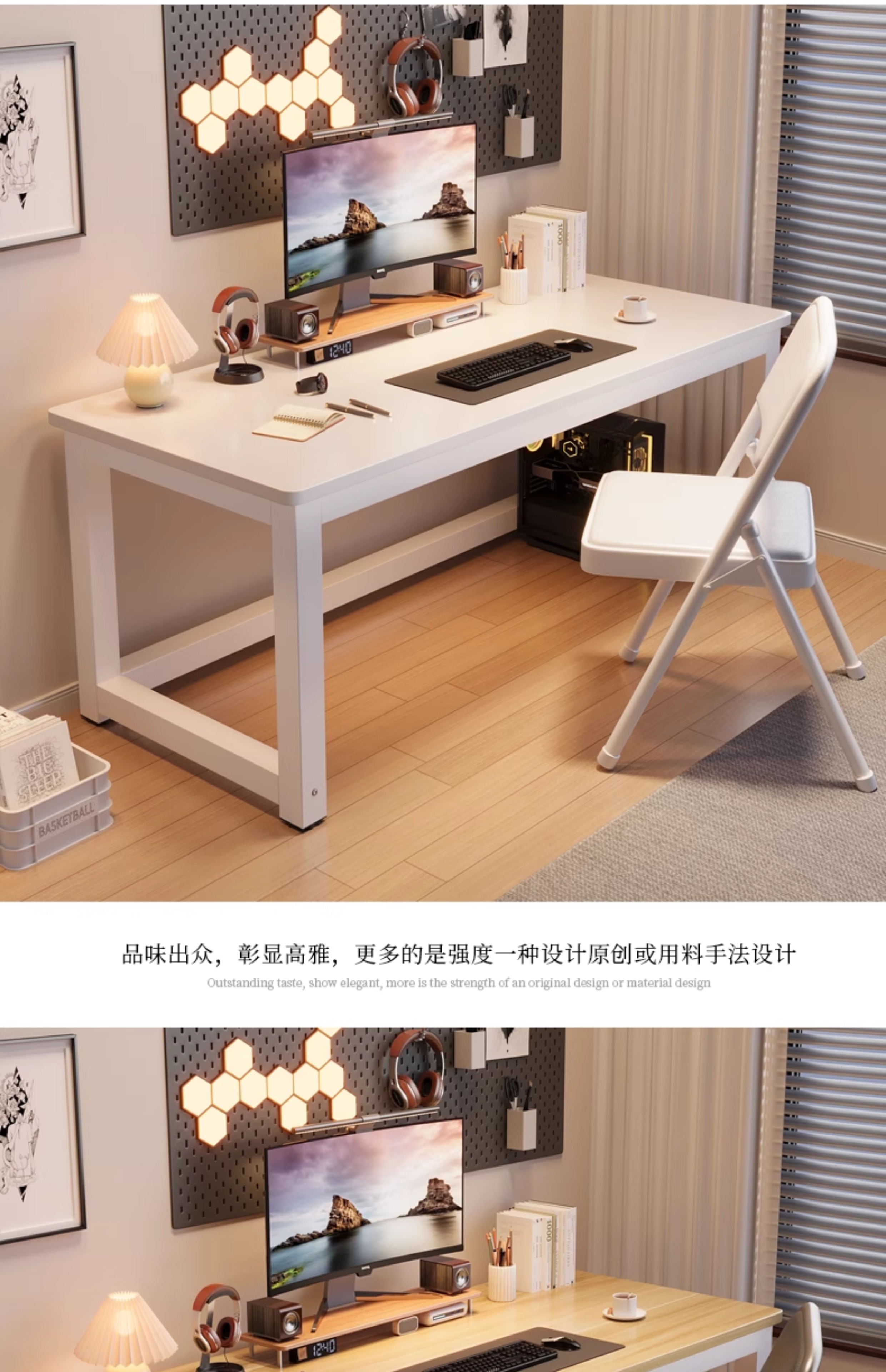 • 【25mm 두께 업그레이드 버전】 화이트 프레임 + 따뜻한 화이트 상판 【업그레이드된 강화 가로대】