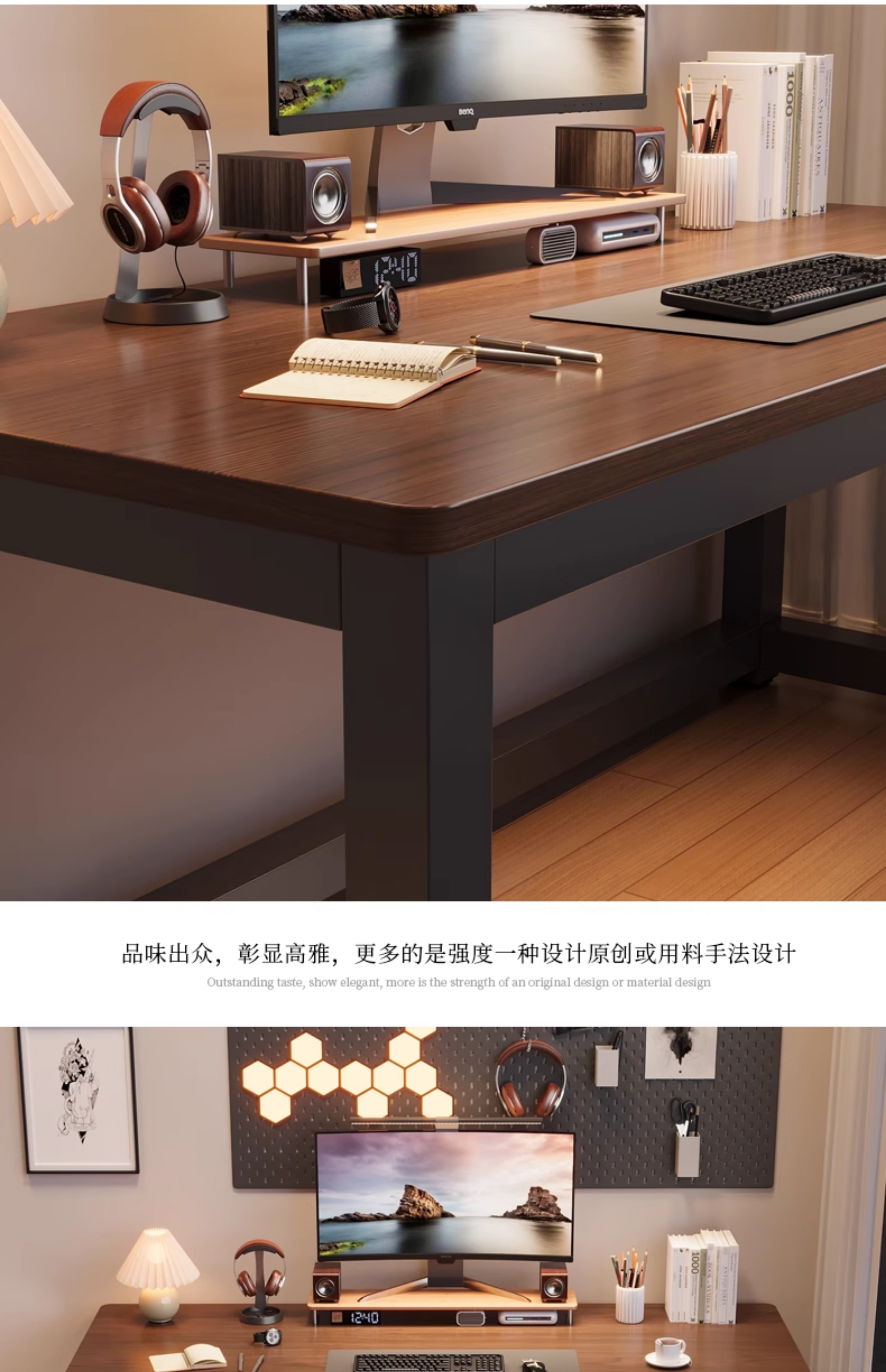 • 【25MM 두께 업그레이드 버전】 블랙 프레임 + 라이트 월넛 【업그레이드된 강화 가로대】