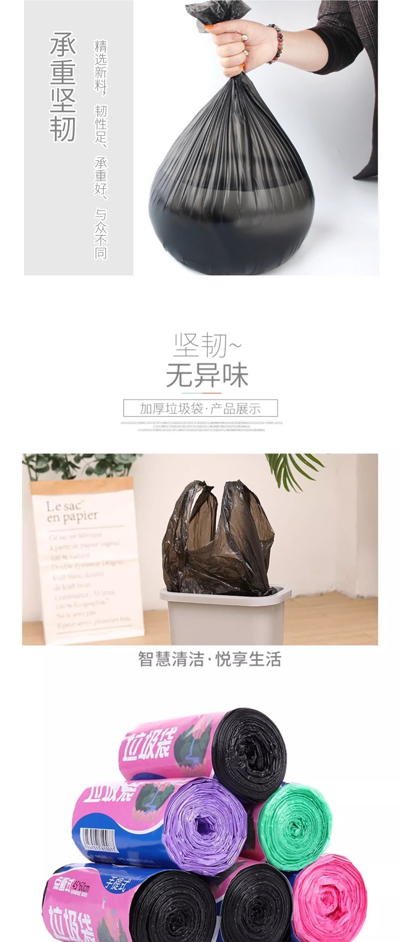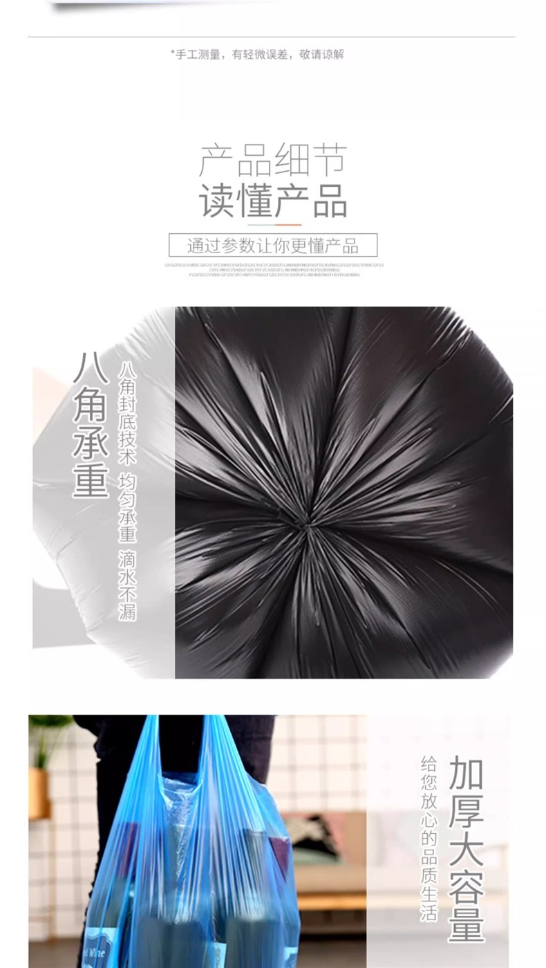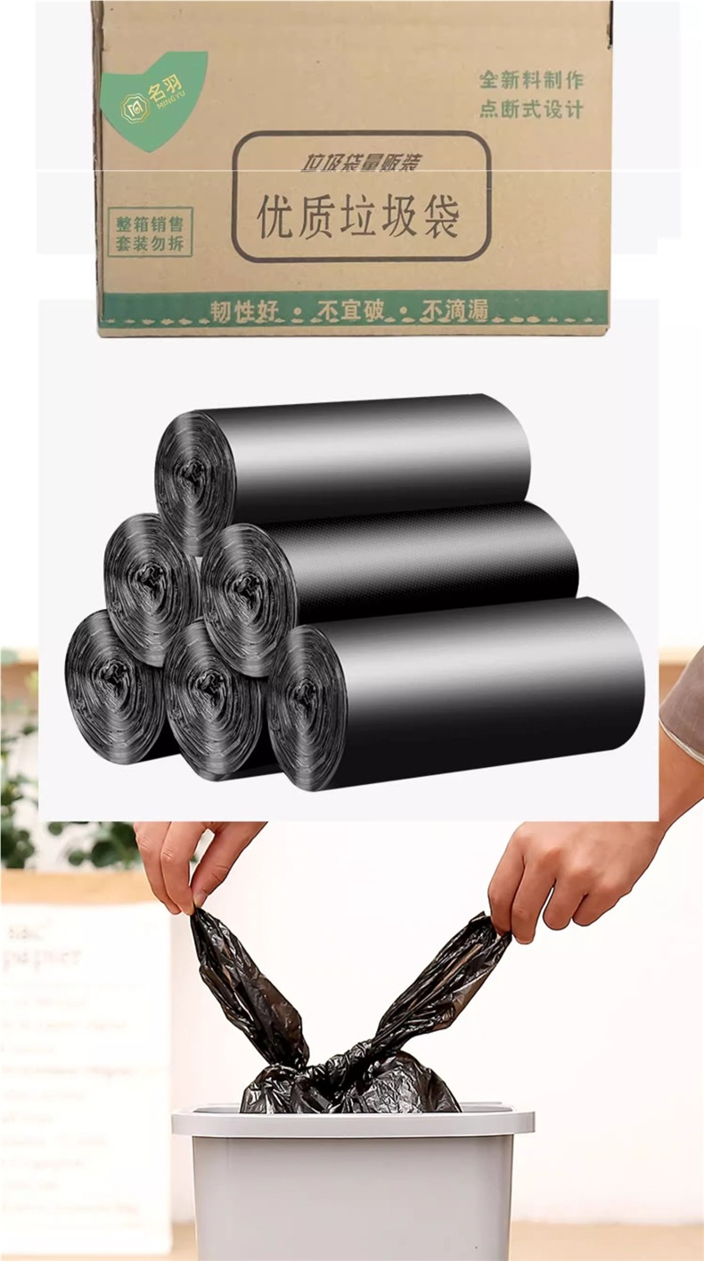 가정용 쓰레기 봉투 전체 상자, 두꺼운 검정색 평면 조끼 스타일 일회용 깨지기 쉽지 않은 비닐 봉투, 대량 도매 없음스토어 가기