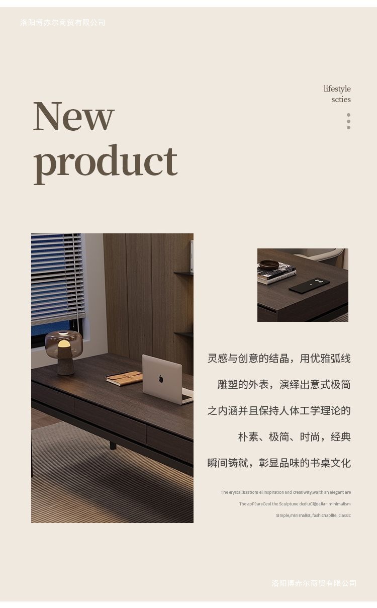 단단한 나무 책상 이탈리아 스타일의 가벼운 럭셔리 현대적인 미니멀리스트 작업대. 가정용 컴퓨터 책상 사무실 연구 책상
