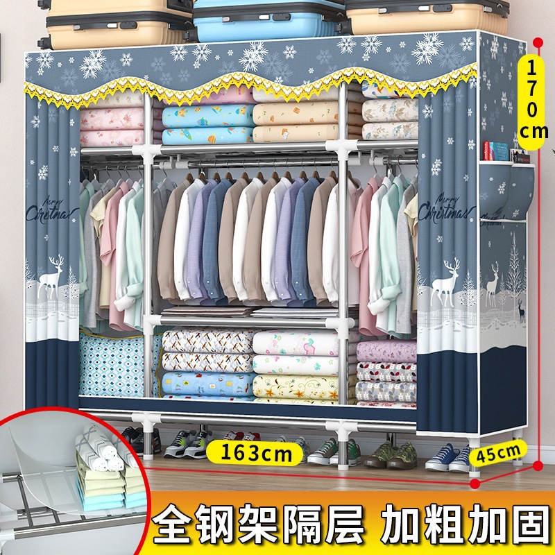 천 옷장, 전체 강철 프레임, 두껍고 두꺼운, 가정용 침실 임대실, 간단한 옷장, 강력하고 내구성이 뛰어난 조립 구조스토어 가기