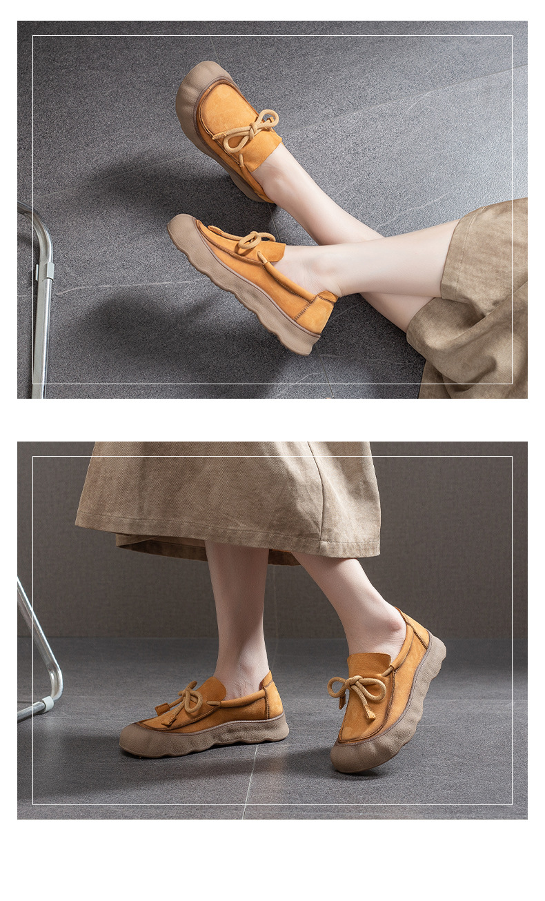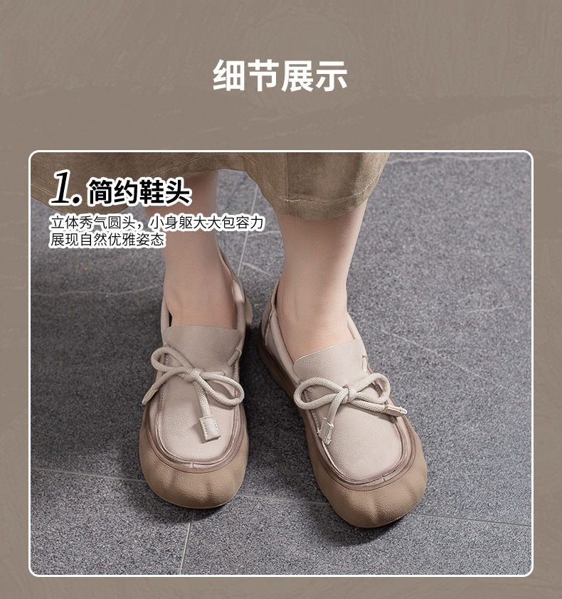 가을 여성용 싱글 슈즈, 부드러운 밑창, 편안하고 다재다능함, 2025 신형 가죽 펌프스 라운드 토 여성화, 플랫 캐주얼 엄마 신발스토어 가기