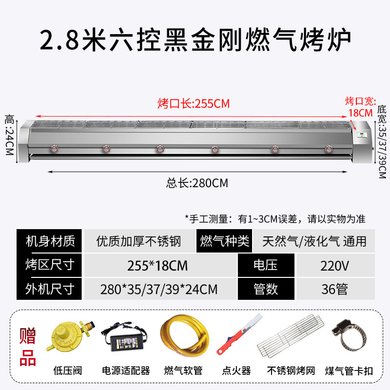 • 가스 2.0m 4개 제어 구운 표면 170*18 디지털 제어판