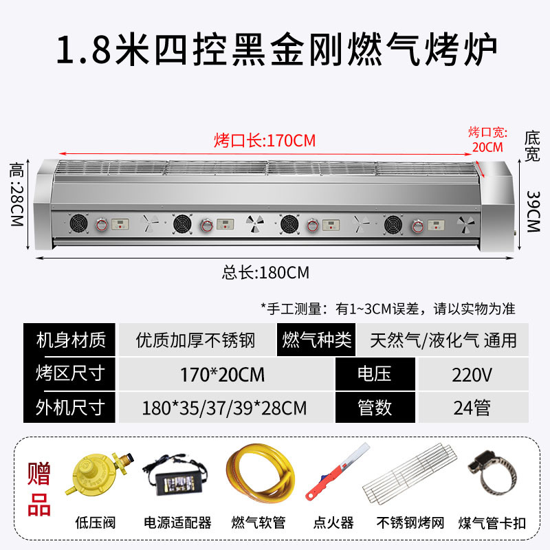 • 업그레이드된 가스 1.8m 4제어 베이킹 표면 170*18 독립 CNC 보드 + 팬