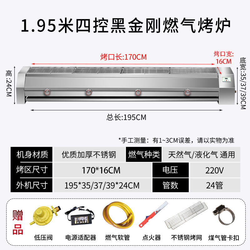 • 가스 2.0m 4개 제어 구이 표면 170*22 디지털 제어판