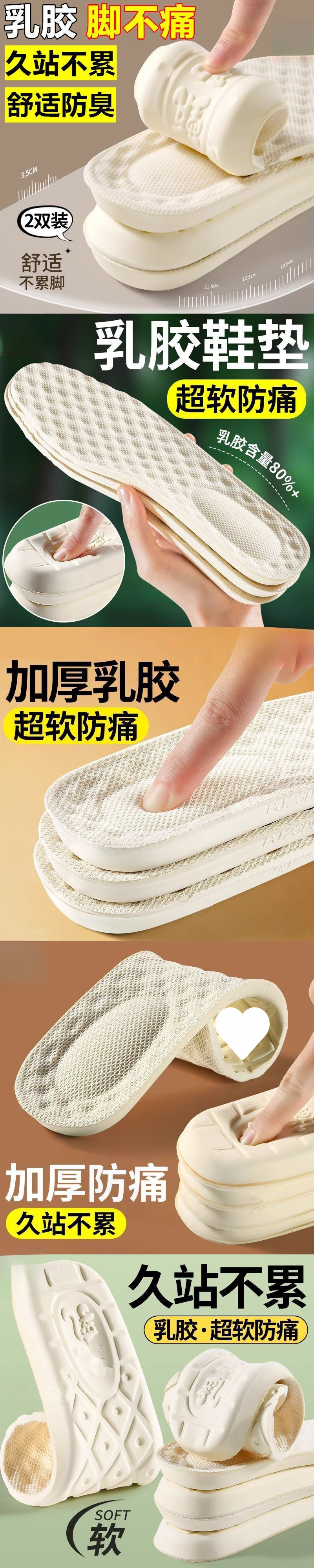 남성과 여성을 위한 매우 부드러운 라텍스 발 통증 방지 깔창, 장시간 서 있어도 피곤하지 않음, 편안함, 탈취제, 통기성, 땀 흡수성, 스포츠 충격 흡수 및 리바운드스토어 가기