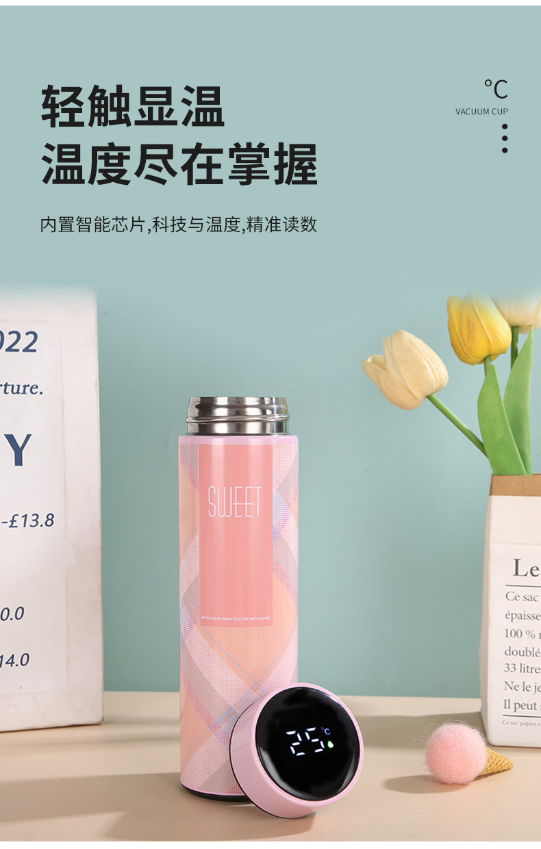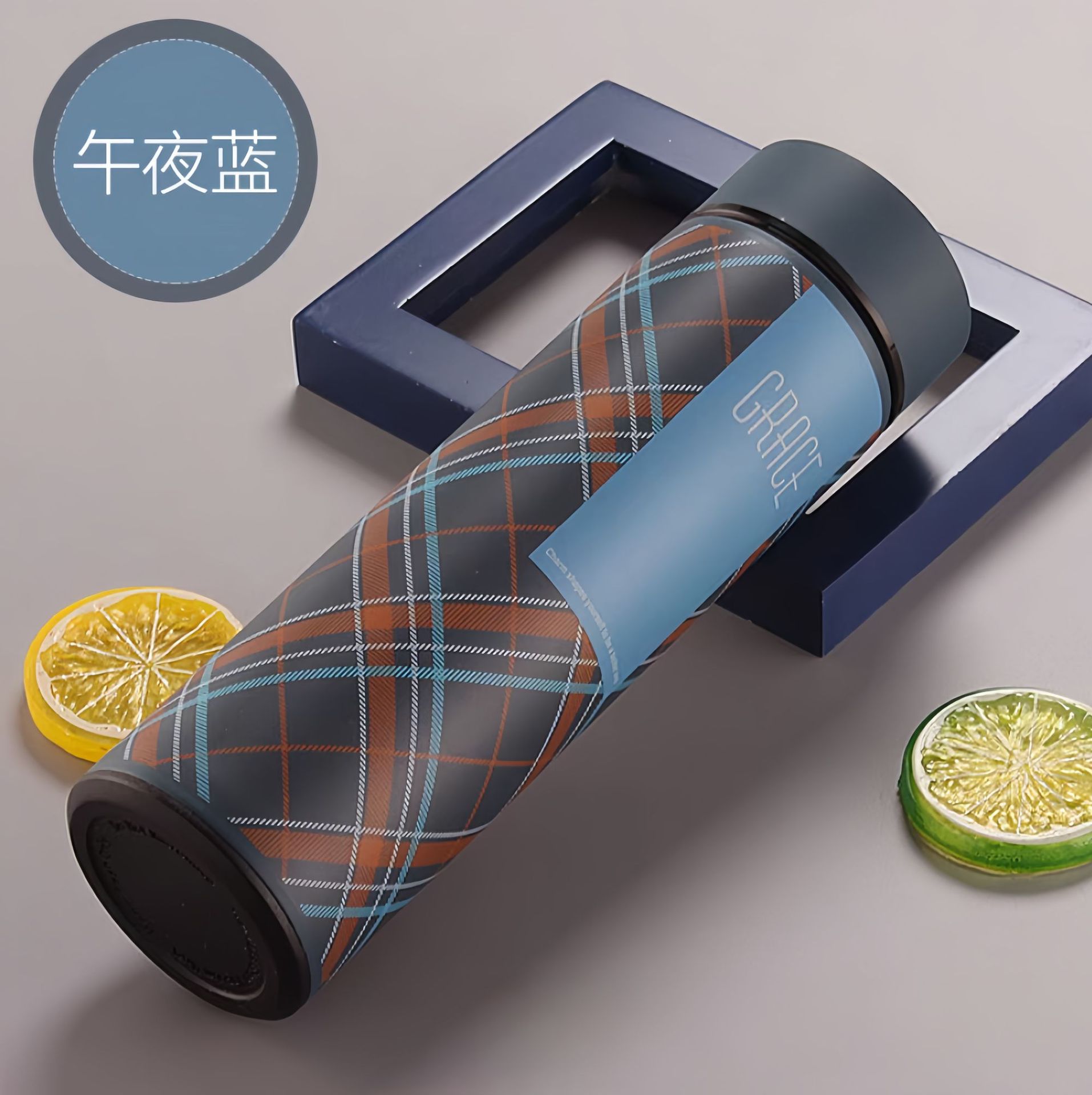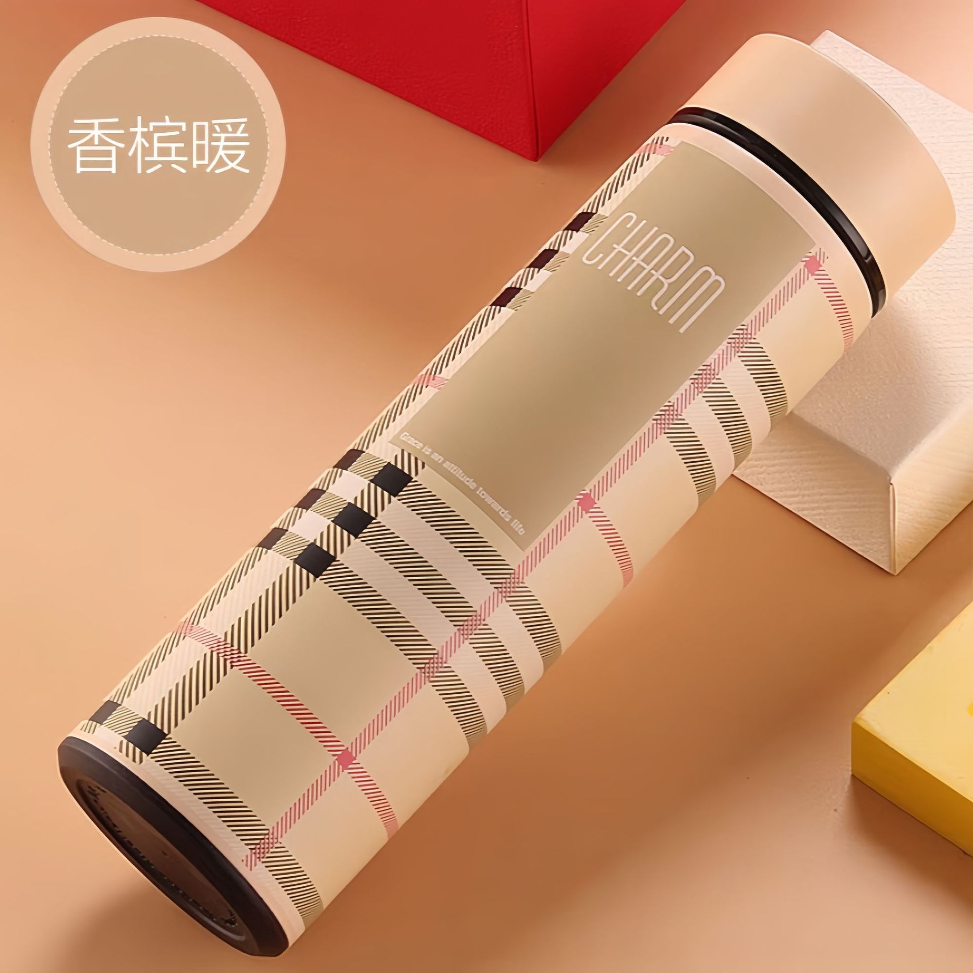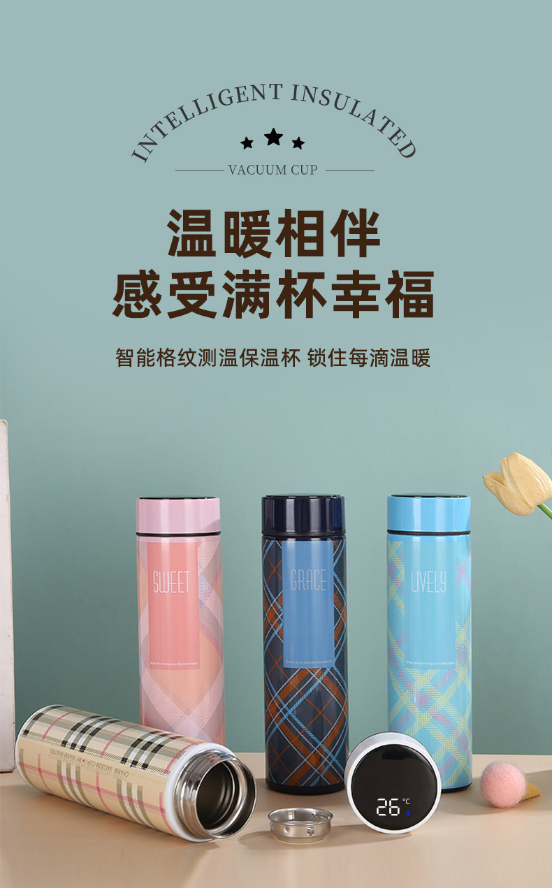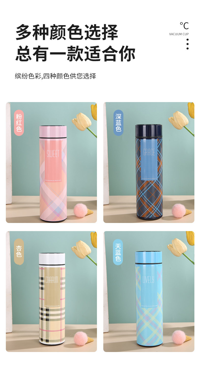 고급스러운 격자 무늬 스마트 온도 디스플레이 스트레이트 컵 304 스테인레스 스틸 진공 절연 컵 야외 휴대용 비즈니스 워터 컵